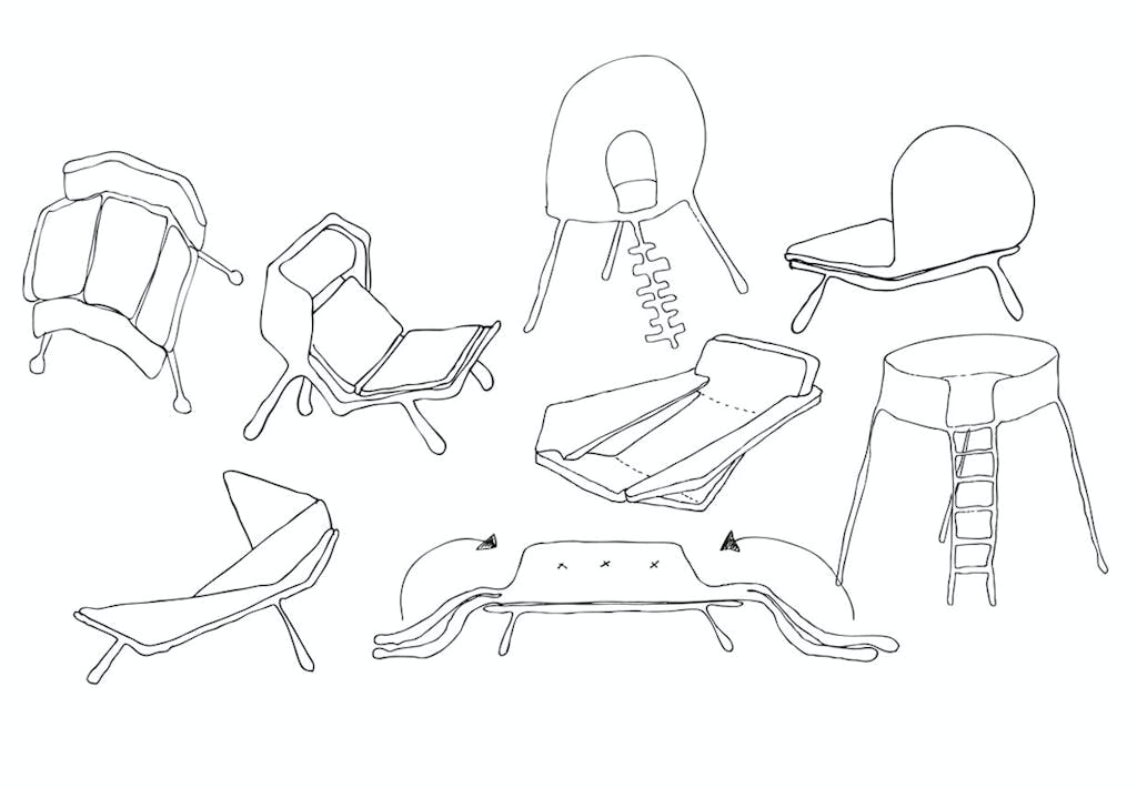 Arbejdsprocessen var, som altid, meget eksperimenterende og legende. Skitsering og modelarbejde foregik sideløbende med de første teoretiske analyser, hvilket betød at jeg endte op med utallige designs, som lå langt fra det endelige koncept og design. Men for mig er skitsering enormt vigtigt, da det er præcis igennem den proces, at jeg arbejder mig ind i et projekt. Undervejs var jeg i tæt dialog med Erik Jørgensen, dels for at dele min viden og dels for at oparbejde viden om produktionen. I takt med analysens resultater og visionens fastlæggelse tog det endelige design form. Jeg brugte meget tid på at sikre den helt rigtige komfort ved at undersøge og fastlægge dimensioner som siddedybde, længder og vinkler i mock-up modeller i 1:1.