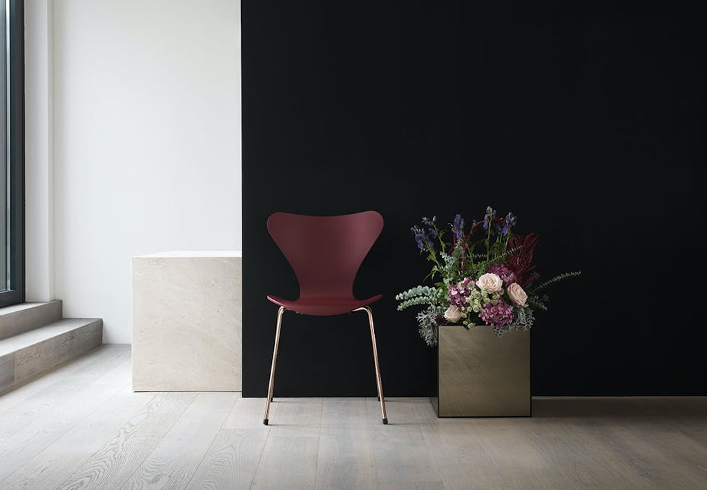 Den klassiske og ikoniske Serie7™ fra Arne Jacobsen er blevet klædt med de feminine farver, merlot og nude, som Fritz Hansens designafdeling har brugt lang tid på at udvikle. Disse to fine farver, som stolene er iklædt, er inspireret fra Japan og deres velkendte kirsebærtræer, som er meget smukke når de blomstrer.