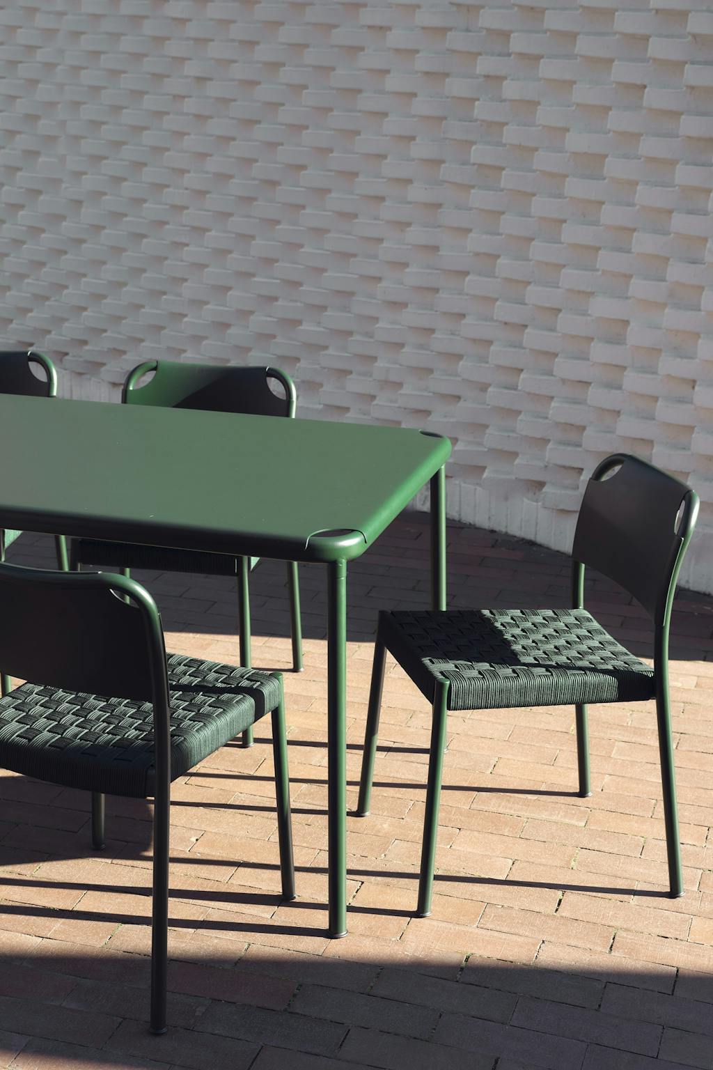 Vind-serien består af en armstol, en stol uden armlæn samt et spisebord på 160 × 90 cm med justerbare fødder, og alle seriens dele er tilgængelig i farverne mist grey og hunter green, der passer perfekt ind i hvilken som helst have.