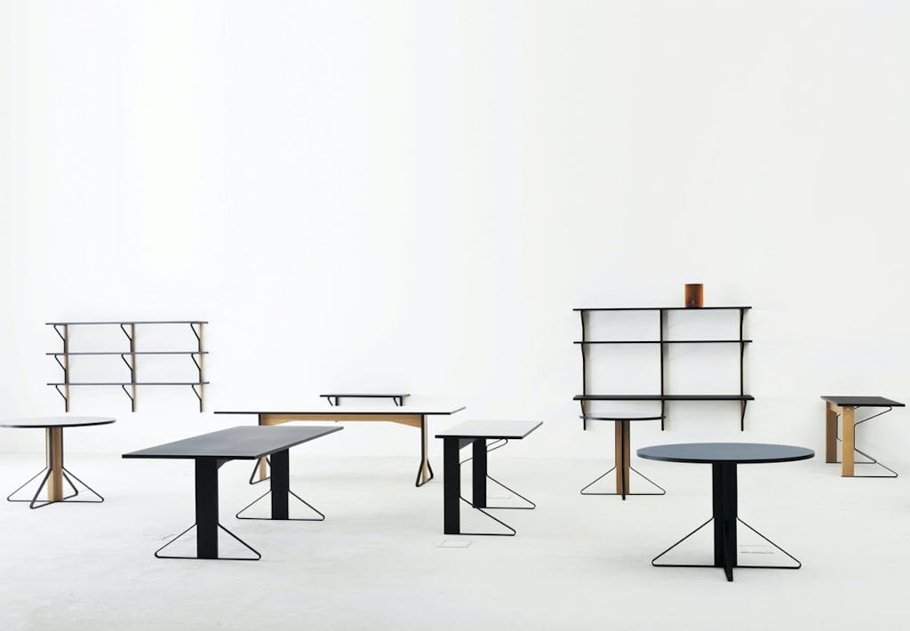 – Det var så fantastisk at stå på tegnestuen i Paris med aluminiumsstænger i hånden og træstykker, vi selv havde skåret til, fortæller Ronan Bouroullec. Den ene halvdel af den franske designerduo sidder mellem de møbler, som indtil videre udgør den Kaari-kollektion, som de netop har designet for finske Artek. Kollektionen er stor og består indtil videre af blandt andet spise- og arbejdsborde og forskellige typer hylder, og den vil i løbet af året udvides til at rumme flere typologier.