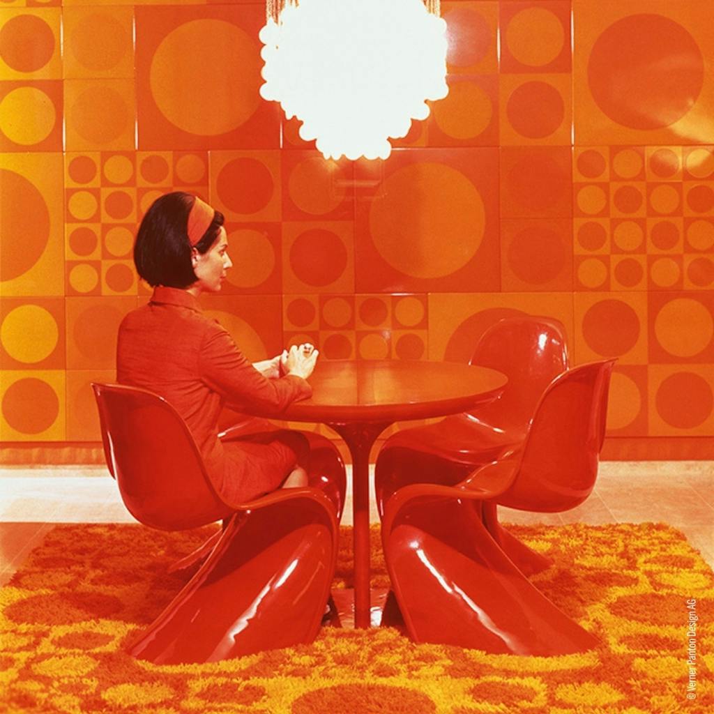 Verner Pantons hustru Marianne sidder her på en af det 20. århundredes mest markante stole, The Panton Chair.