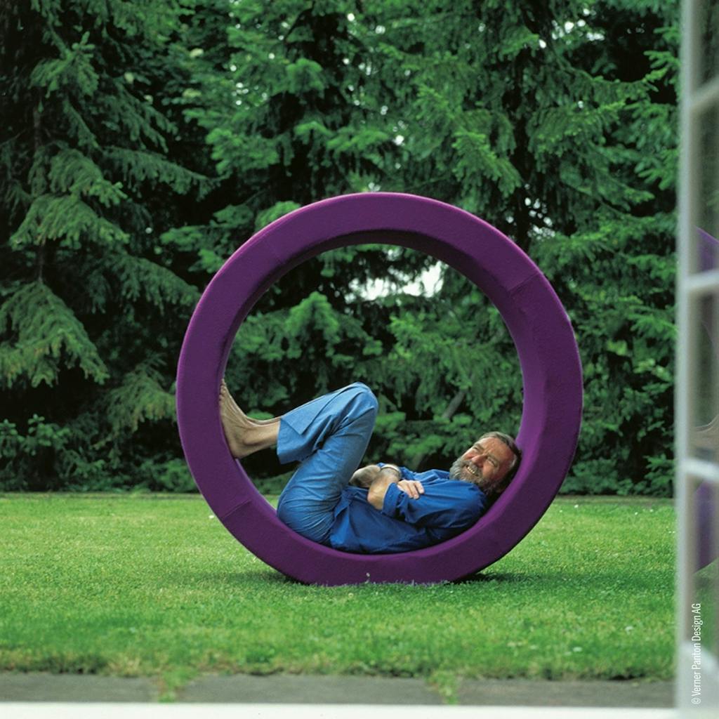 Sitting wheel designede Verner Panton i 1973 for tyske Metzeler Schaum – her er designeren selv naturligvis iført yndlingsfarven blå.
