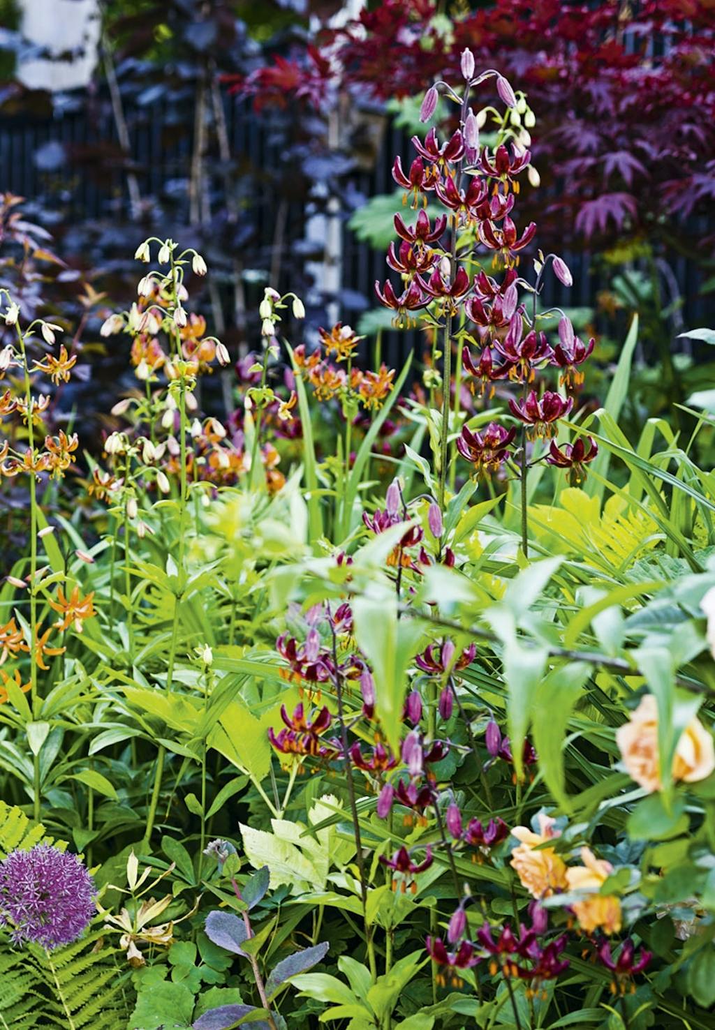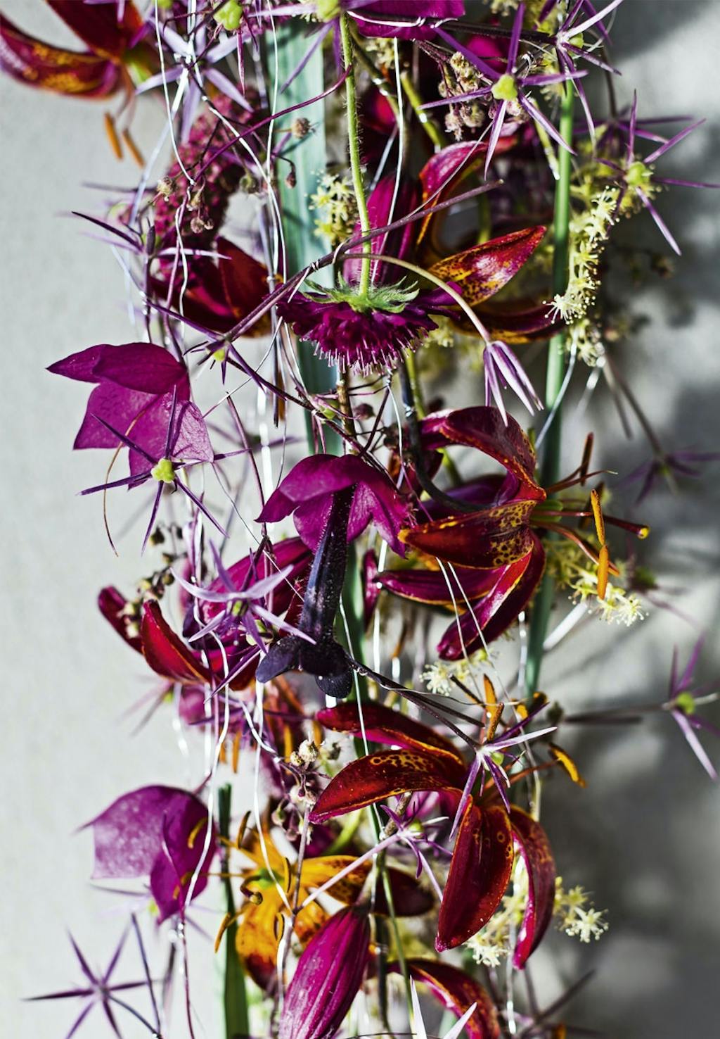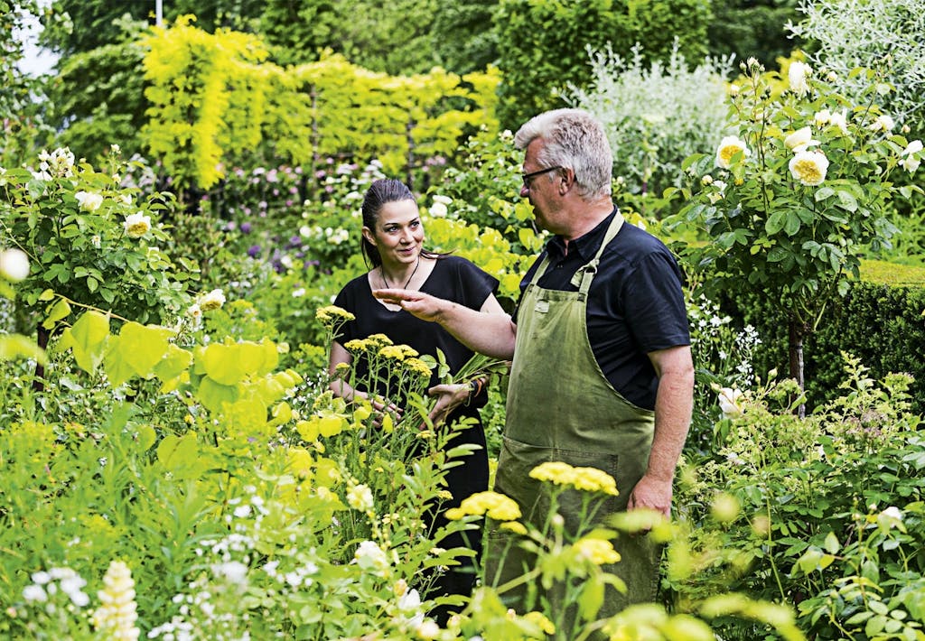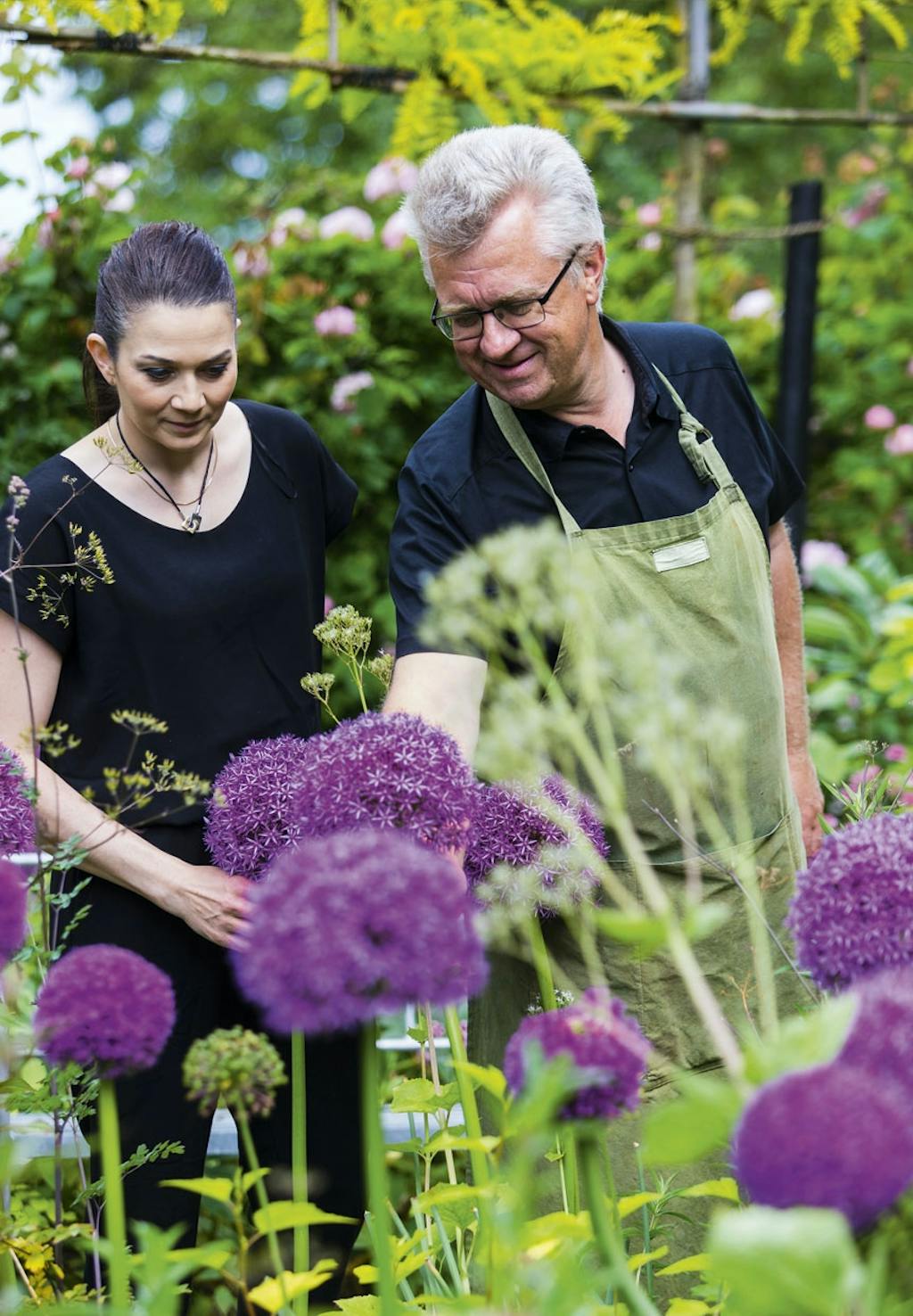 At tilbringe en hel junidag i Claus Dalbys have er en af de oplevelser, som man ville forunde enhver haveentusiast at få. Her er så mange detaljer, ideer og umiddelbar skønhed. Claus Dalbys have i Risskov i Aarhus er en af Danmarks absolut flotteste, og sådan en dag lige efter sankthans med typisk dansk sommervejr – byger, blæst og høj sol – giver haven den besøgende tusinder af indtryk. Også hos den internationalt kendte blomsterdesigner Annette von Einem, som Claus Dalby gav lov til at plukke løs af havens frodighed og forvandle den til buketter og dekorationer. Kun da hun forelskede sig i en helt fantastisk lilje, tøvede Claus Dalby et øjeblik, men som han sagde: alt for kunsten. Men det gjorde lidt ondt i os alle, da den meter høje kranslilje blev skåret af – for selv om den er flerårig vil den ikke komme igen næste år, når man plukker den. Det skyldes, at stængel og blade skal have mulighed for at visne ned og bringe kraft tilbage til løget. Til Annette von Einems forsvar skal siges, at hun brugte og genbrugte liljen til flere dekorationer, og nu er den foreviget her.
