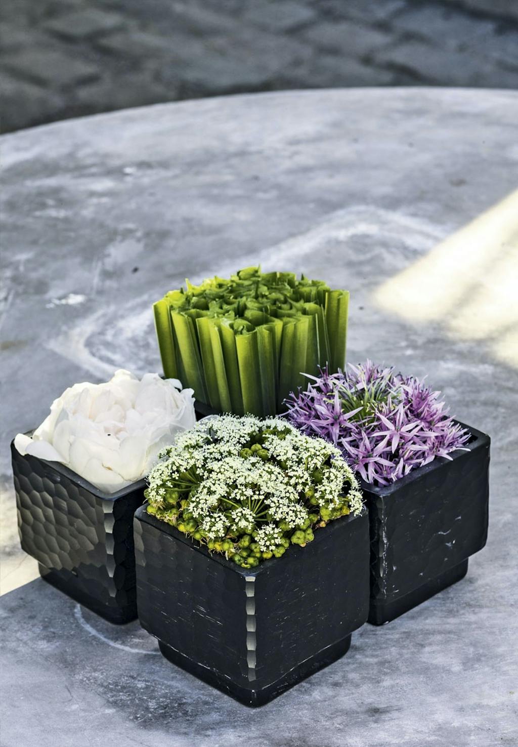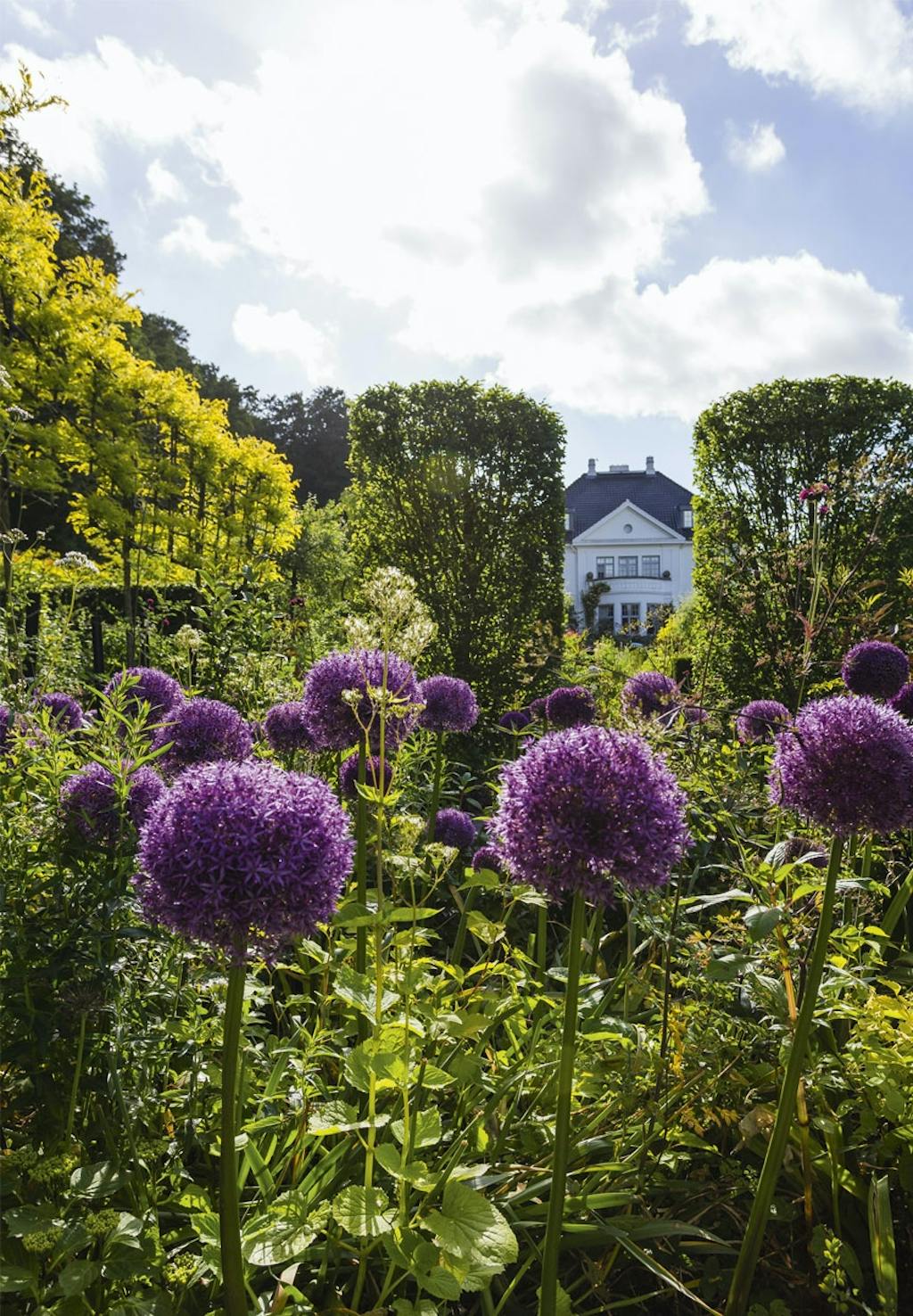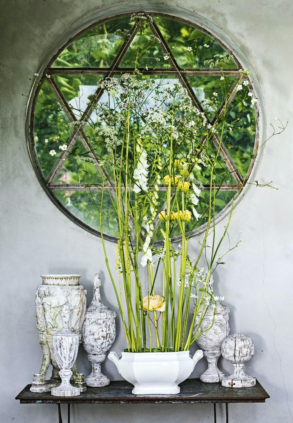 At tilbringe en hel junidag i Claus Dalbys have er en af de oplevelser, som man ville forunde enhver haveentusiast at få. Her er så mange detaljer, ideer og umiddelbar skønhed. Claus Dalbys have i Risskov i Aarhus er en af Danmarks absolut flotteste, og sådan en dag lige efter sankthans med typisk dansk sommervejr – byger, blæst og høj sol – giver haven den besøgende tusinder af indtryk. Også hos den internationalt kendte blomsterdesigner Annette von Einem, som Claus Dalby gav lov til at plukke løs af havens frodighed og forvandle den til buketter og dekorationer. Kun da hun forelskede sig i en helt fantastisk lilje, tøvede Claus Dalby et øjeblik, men som han sagde: alt for kunsten. Men det gjorde lidt ondt i os alle, da den meter høje kranslilje blev skåret af – for selv om den er flerårig vil den ikke komme igen næste år, når man plukker den. Det skyldes, at stængel og blade skal have mulighed for at visne ned og bringe kraft tilbage til løget. Til Annette von Einems forsvar skal siges, at hun brugte og genbrugte liljen til flere dekorationer, og nu er den foreviget her.