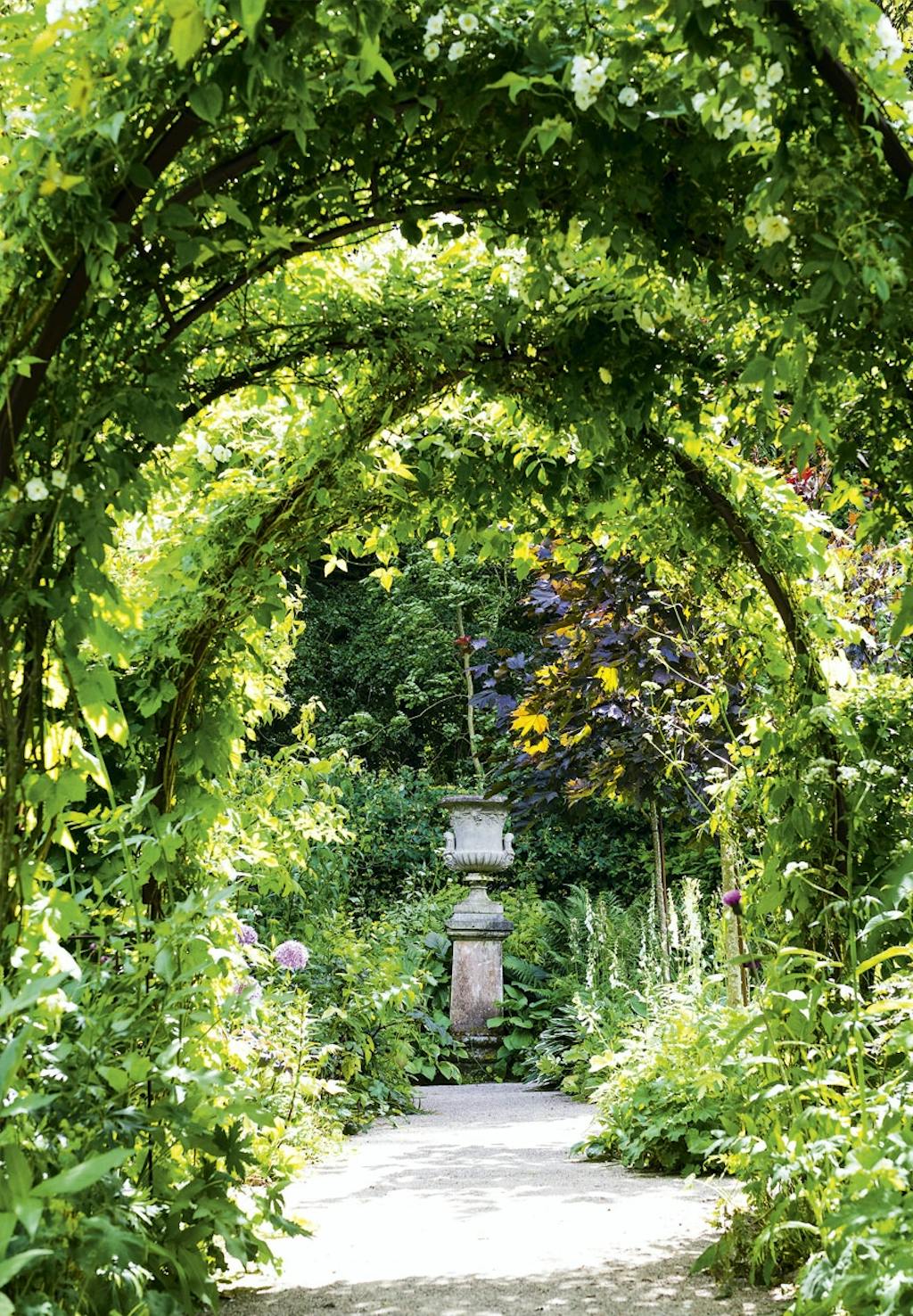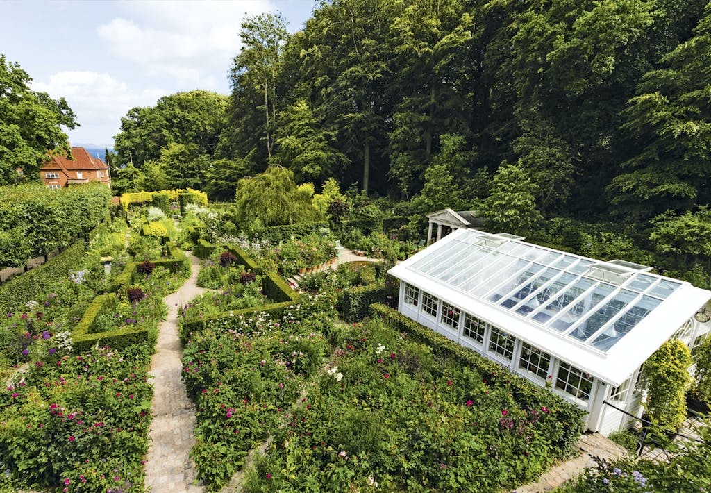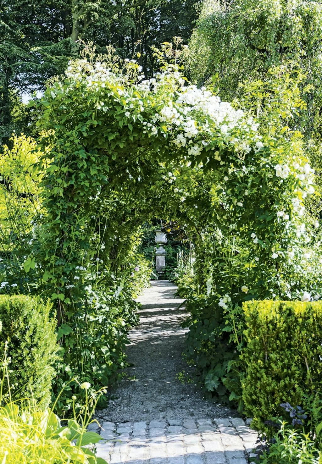 Claus Dalby købte patriciervillaen fra 1908 i 1994. Den ligger klos op ad Risskov. Her var græsplæne og få blomster, og det var først, da Claus Dalby mødte blomstermaleren Anne Just, at han blev interesseret i at gøre noget ud af området omkring villaen. Hun hjalp ham med det første staudebed og fik tændt ham – bid for bid af græsplænen blev inddraget for i 2002 helt at forsvinde. Princippet om at inddele sin have i forskellige rum har været en af de førende i haveindretningen i snart mange år. I Claus Dalbys tilfælde et havepalads med rigtig mange rum, nok omkring de 15, der fra tidligt forår til sent efterår transformerer sig fra tusinder af narcisser og tulipaner til endnu flere roser. Annette von Einem har været inspireret af de sammenstillinger af vækster, hun har oplevet denne junidag. Når hun fx ruller hostablade og andre store farvede blade og bruger dem som bund i en spektulær opstilling, knytter det sig direkte til et synsindtryk. Også farvemikset af hvidt og gult oplevede hun i den del af haven, hvor Claus Dalby sværger til den blanding. Den smukke buket af roser, hun binder af både engelske og historiske roser, har fået et slør af den pink til purpurfarvede blåhat, som den besøgende kan opleve i Claus Dalbys rosenbede. Lysthuse, drivhuse og senest et stort væksthus giver gode baggrunde for de billeder, vi har skudt til denne reportage, men er også rum, der sørger for, at der hele året er hektisk aktivitet inde og ude. Som Claus Dalby selvironisk siger: – Det eneste, jeg ikke dyrker, er bar jord.