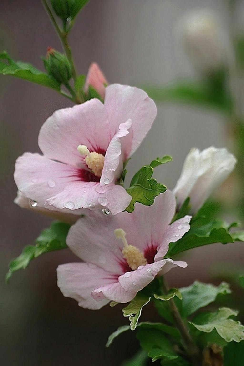 Ikke fra Syrien og ikke en rose, men den er smuk, og Hibiscus syriacus blomstrer stædigt og forunderligt i sensommeren.