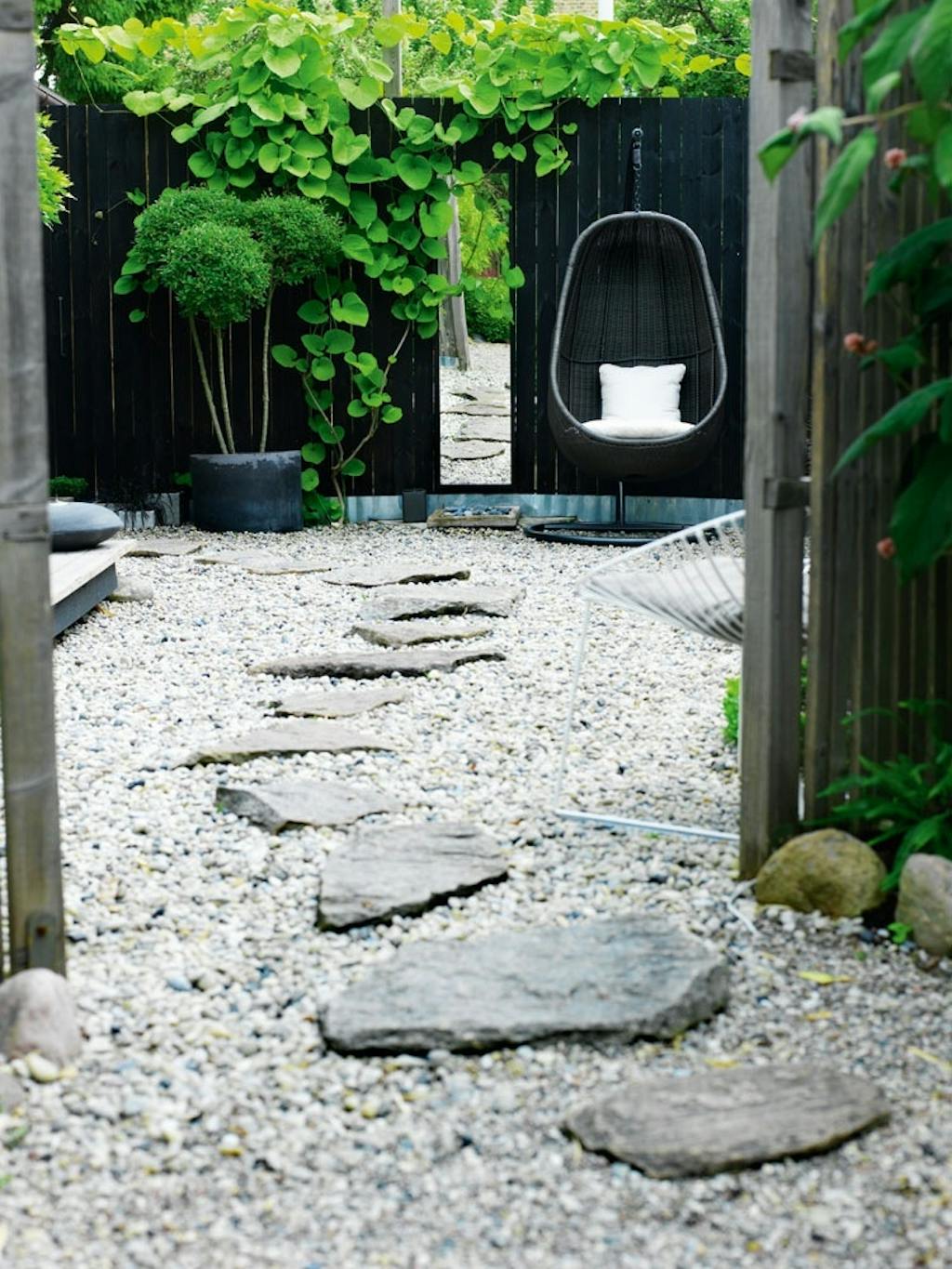 Havedesigneren, Anders Mårtensson, anlagde en ny have, der på trods af fraværet af græs er en rumopdelt grøn oase i en stram arkitektonisk stil, der bærer præg af en kraftig japansk inspiration.