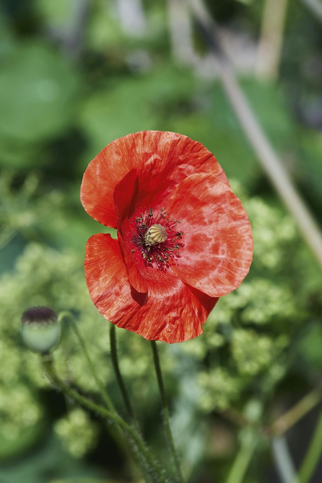 De taknemmelige valmuer sår sig selv og vokser flittigt på de solrige pletter i haven.