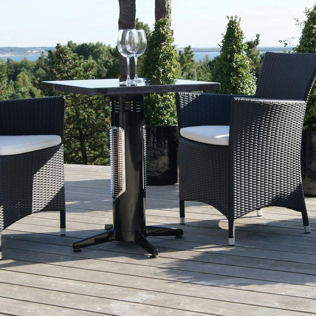 Dette cafébord fra Mensa Heating har en indbygget terrassevarmer, så du slipper for en varmelampe, der står og fylder under bordet. Og bare rolig: Den har teknologien "safe touch”, som gør, at du kan røre ved den uden at brænde dig på benene.