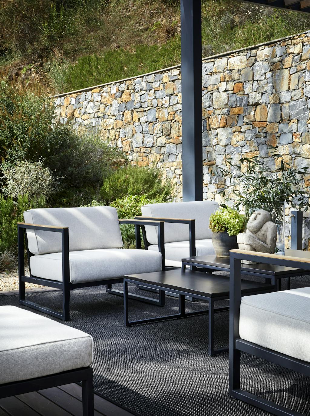 Loungemøblernes betræk er desuden hurtigtørrende, slidstærkt og egnet til maskinvask, så det egner sig perfekt til udendørs brug og står flot sæson efter sæson – både i sydlandsk såvel som det lidt mere barske nordiske klima.