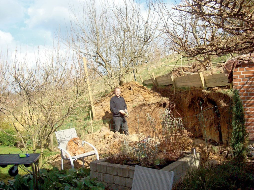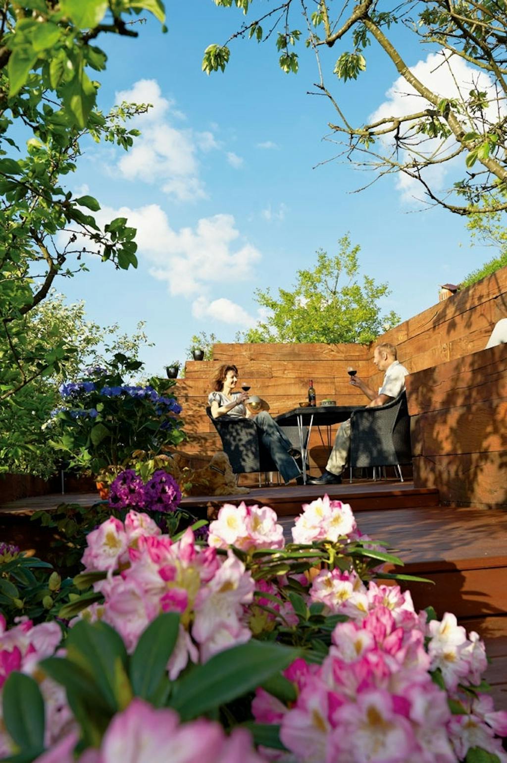 Jernvilje, over 18.000 kg egestræsveller og et lastvognslæs af granitsplinter. Det var ingredienserne da Morten Boeck-Hansen selv tegnede og byggede en terrasse i sin stejle baghave i Silkeborg.