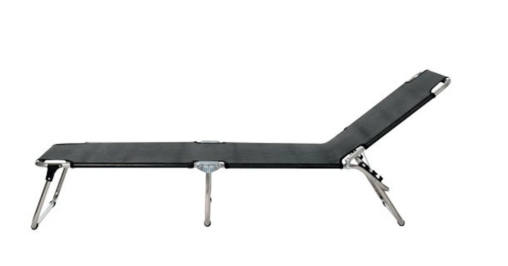 Letvægts-liggestol med bærestropper. Sort plastfi ber og stel i aluminium. L 190 cm. 950 kr., Bo-Tikken.