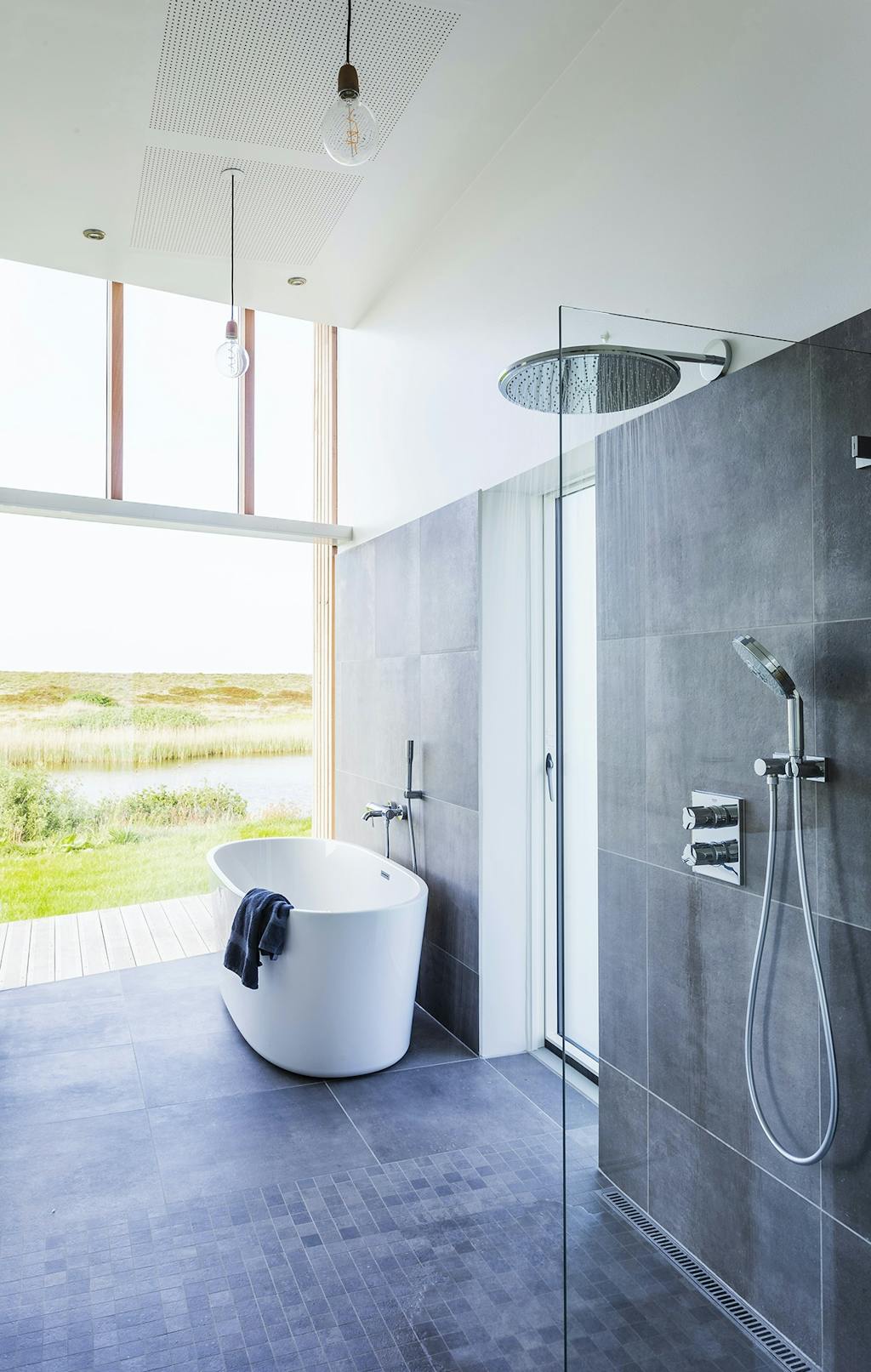 I det fritstående badekar kan man sidde med solstråler i ansigtet og uforstyrret nyde udsigten gennem det store vindue.