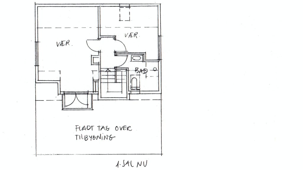 Vi har købt en gammel murermestervilla fra 1928, hvor vi vil lave en udvidelse af førstesalen, og i den forbindelse renovere og udvide det eksisterende badeværelse.