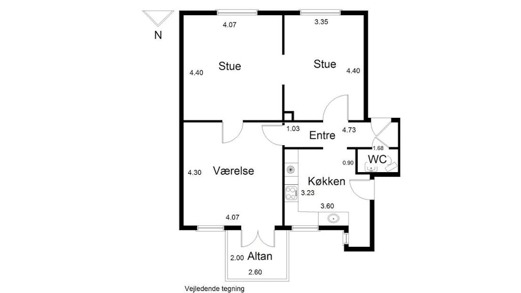 Det virker jo mest naturligt at have vådrumsfunktionerne samlet, ikke mindst hvis du indretter soveværelse i værelset lige overfor og evt. fjerner væggen helt eller delvist imellem køkken og værelset med altan, så du får et skønt alrum mod gården.