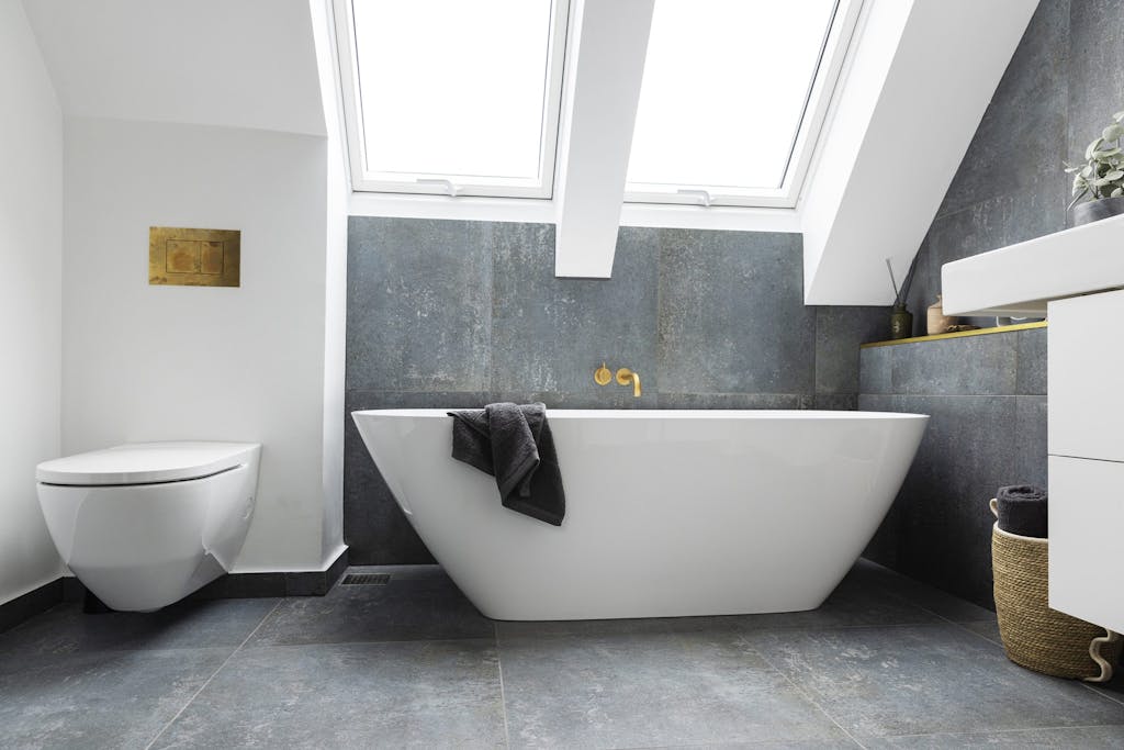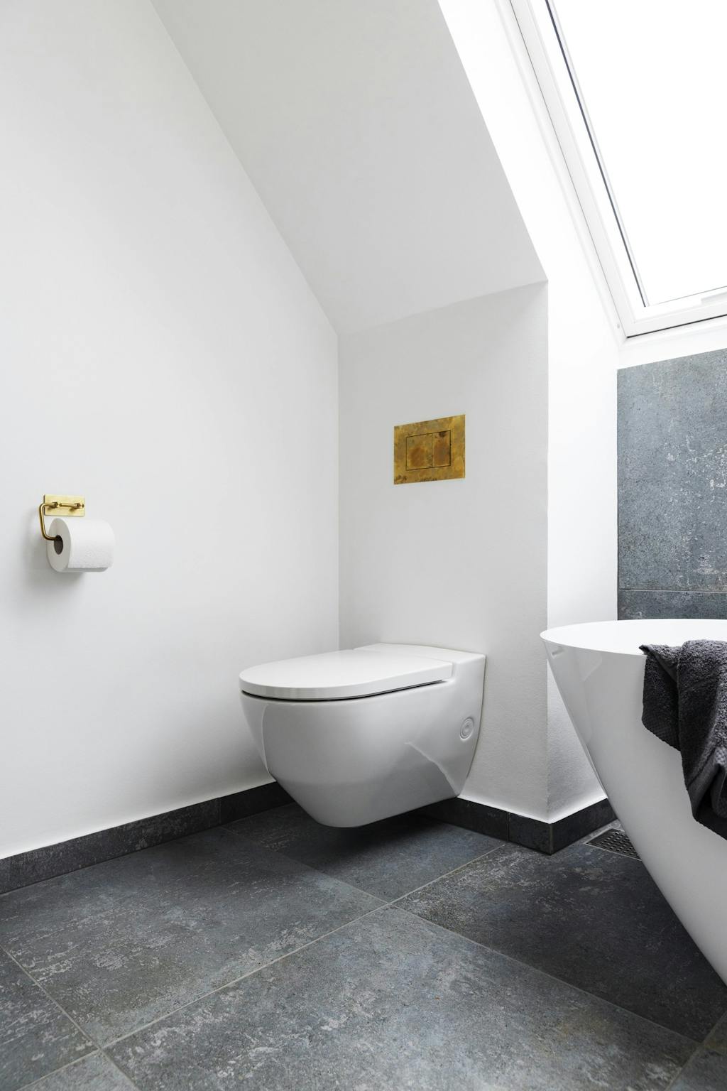 – Vi ønskede et badeværelse, hvor vi kan trække os tilbage og nyde et karbad i rolige omgivelser med et kig ud ad ovenlysvinduerne, fortæller Anja, der til daglig arbejder hos badeværelsesproducenten LAUFEN.