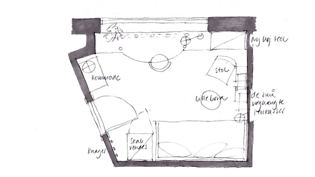 Jeg har vedhæftet nogle billeder samt en plantegning og håber på, at I kan komme med nogle kreative ideér til, hvordan vi gør hendes værelse mere hyggeligt og knapt så rodet.