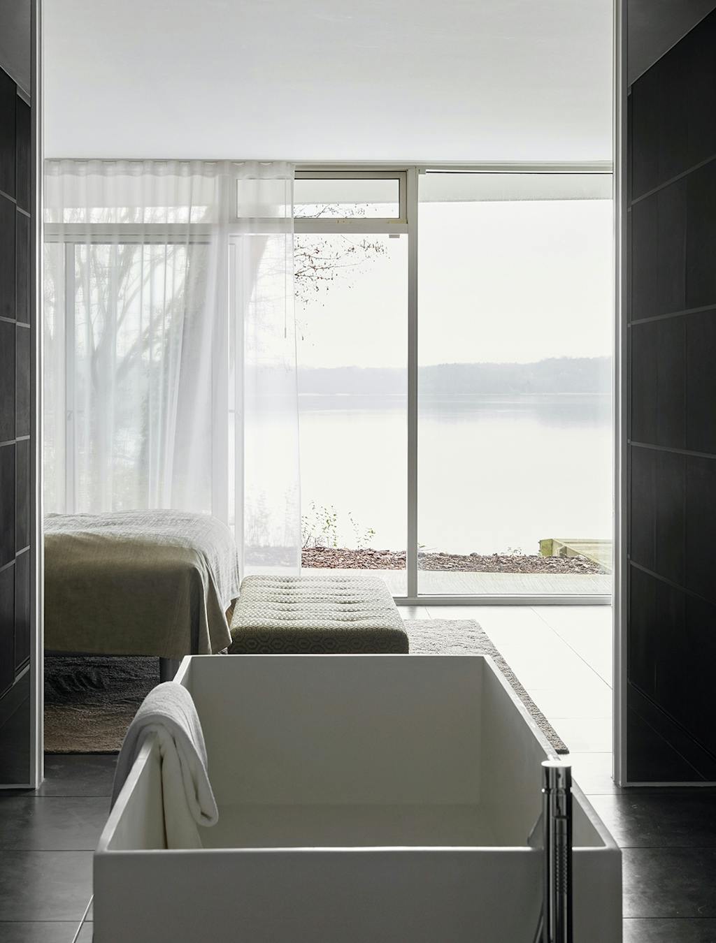 Naturen er hevet helt indenfor i det luksuriøse velværerum bestående af bad og soveværelse. Store panoramavinduer åbner op mod den store sø, som ligger lige udenfor. Når man ligger i sengen, får man således en følelse af at befinde sig på et skib, fordi man bare ser direkte ud over vandet. Udsigten er vestvendt, og derfor er der solnedgang hver eneste dag året rundt. Hver dag er udsigten, lyset, farverne forskellige.