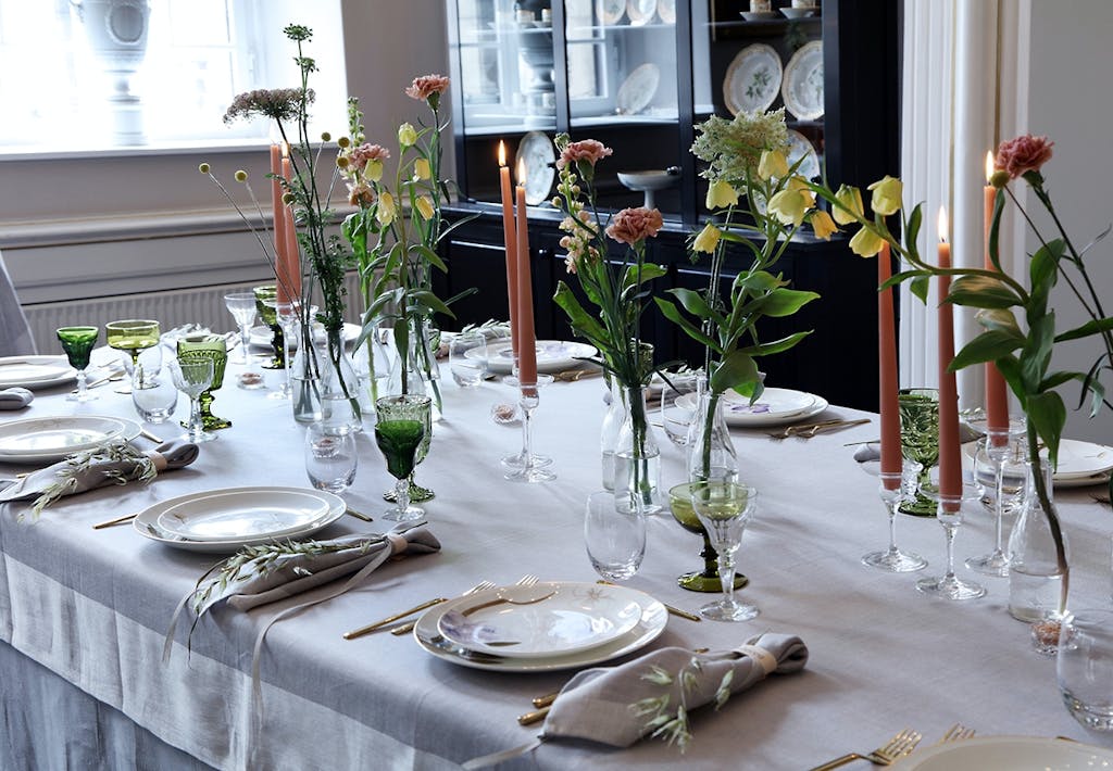 Thilde Maria Haukohl Kristensen har lavet blomsterarrangementerne til Royal Copenhagens bryllupsborde, der ses på billederne. Bordene kan ses i Royal Copenhagens butik på Amagertorv i København frem til 31. maj 2017.