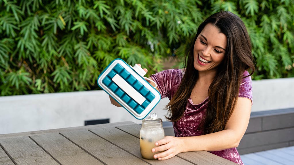 Den fungerer som en dobbeltsidet isterningebakke, hvilket betyder, at den udnytter pladsen i fryseren til yderste. Den frigiver nemt isterningerne og er praktisk både hjemme og på udflugt.