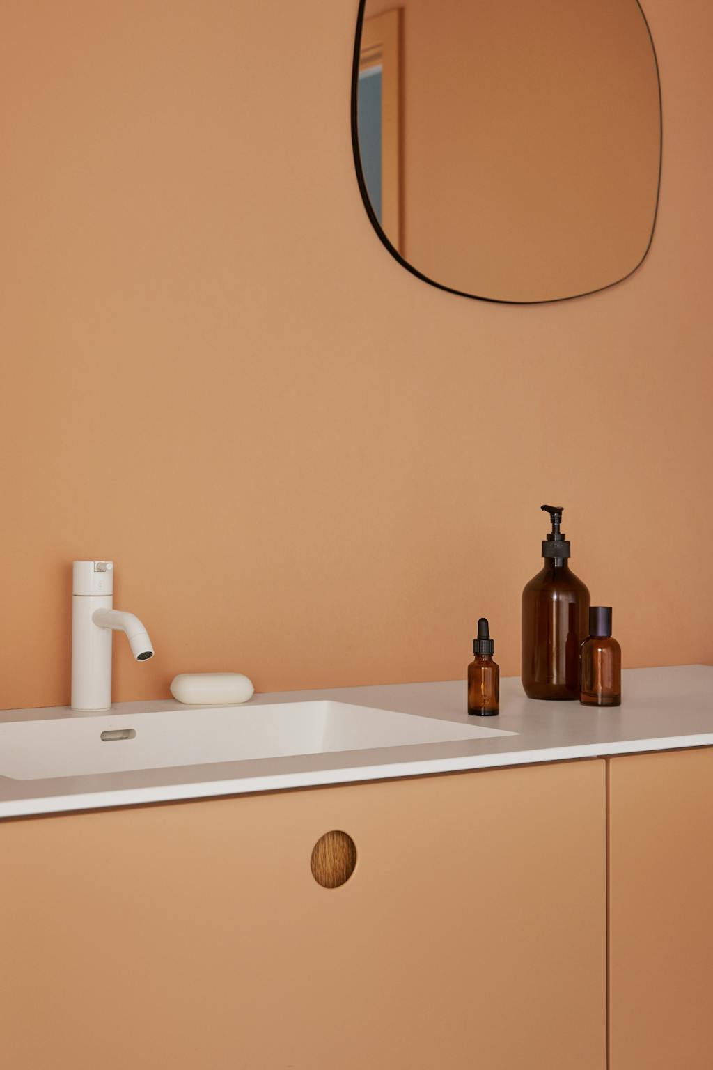 Designers Remix' kreative direktør, Charlotte Eskildsen, har valgt en varm palette til køkkenet og badeværelset fra Reform, der bryder med de hvide flader og er en hyldest til naturen.