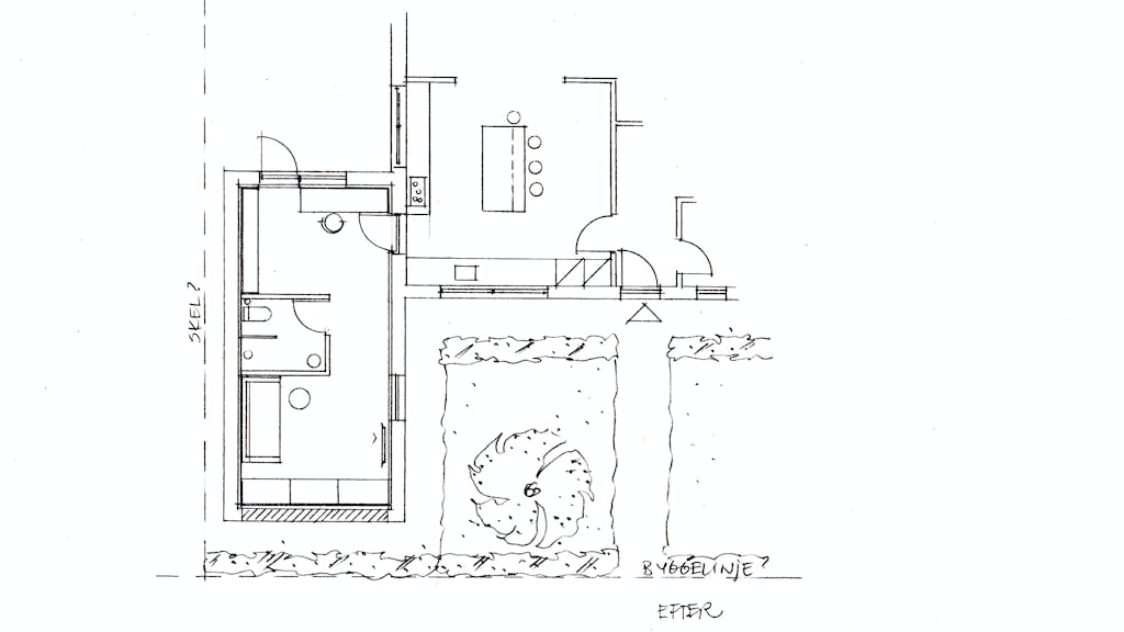 Vi mangler plads til vores ældste og går og overvejer om ikke vi kan indrette vores garage til minibolig, bare midlertidigt til han finder en studiebolig i Århus. Skitse vedlagt af køkken og garagen ved siden af.