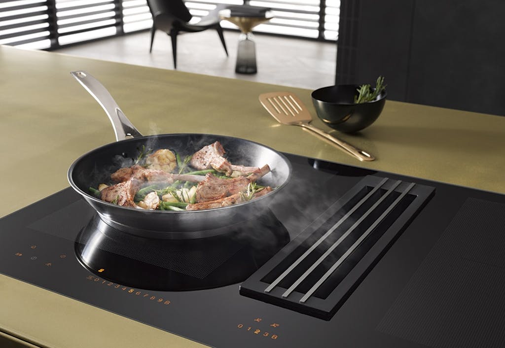 En emhætte i loftet kan skygge for udsigten i køkkenet og fylder ganske meget. Derfor har designerne fra Miele udviklet en fantastisk kombinationsløsning til sine elegante induktionskogeplader, der ud over fleksible indretningsmuligheder, også giver bedre køkkenoplevelser. Designet hedder 2-i-1 på grund af den integrerede emhætte (bordemfang). Læs og se mere om de mange fordele her.