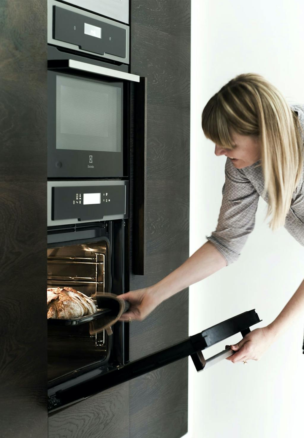- Vi var da rundt og kigge på hvide køkkener hos de forskellige køkkenfirmaer. Men jeg blev ved med at vende tilbage til det drømmekøkken, jeg havde set i bladet. Et hvidt køkken er et praktisk og stilrent valg, men i dette tilfælde blev jeg altså nødt til at vælge med hjertet. Og resultatet er blevet endnu bedre end for- ventet, da det mørke køkken fremhæves så flot i det store, lyse rum, siger Mette Kirstine Brinch.