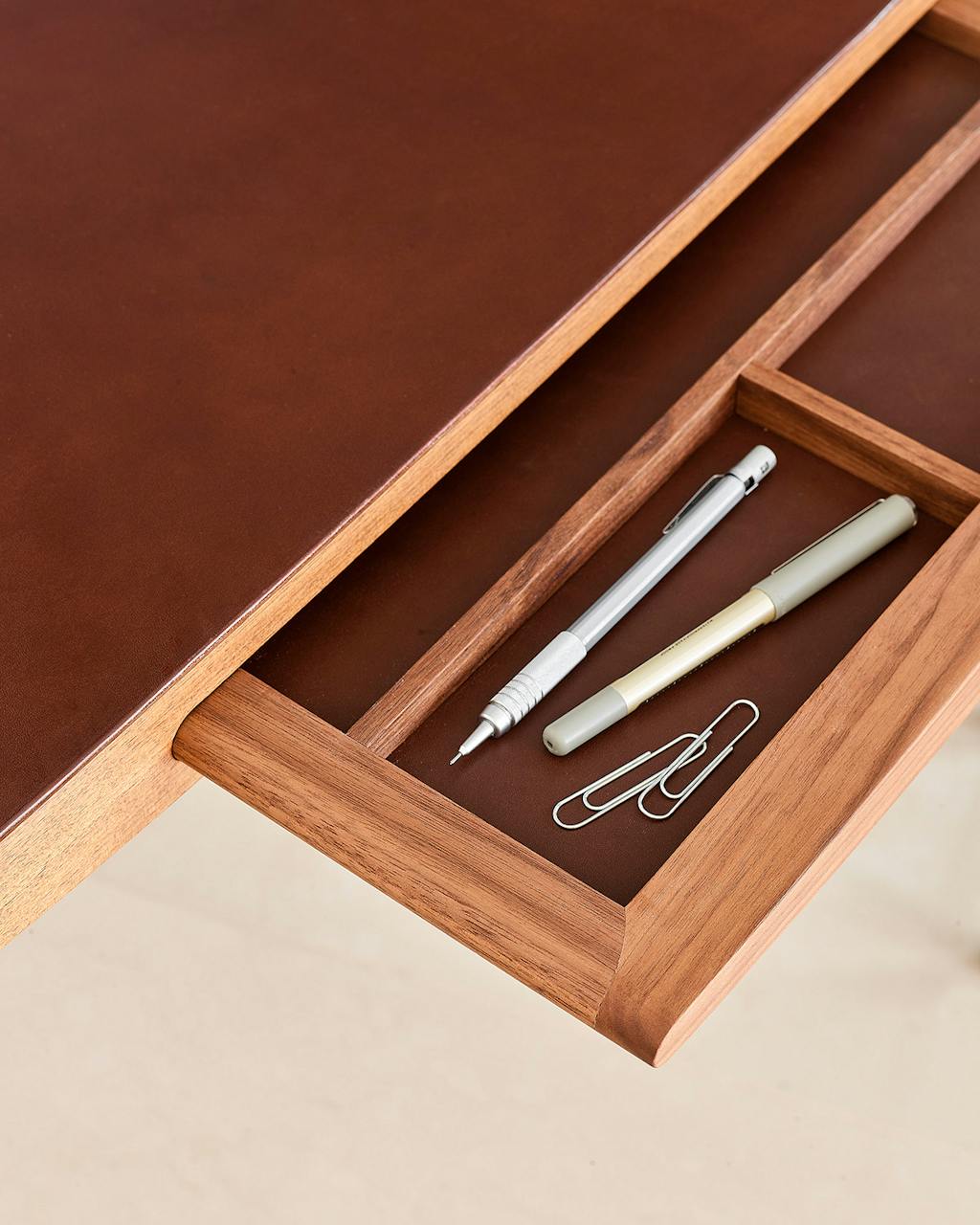 Når den rette skrivebordsstørrelse er fundet, er det tid til at overveje, hvor meget opbevaringsplads du har brug for. Kræver dit arbejde for eksempel, at du altid har bestemte kontorartikler inde for rækkevidde? Så kan et bord med smukke indbyggede skuffer være en både praktisk og elegant løsning, der samtidig kan skabe et både roligt og minimalistisk look.
