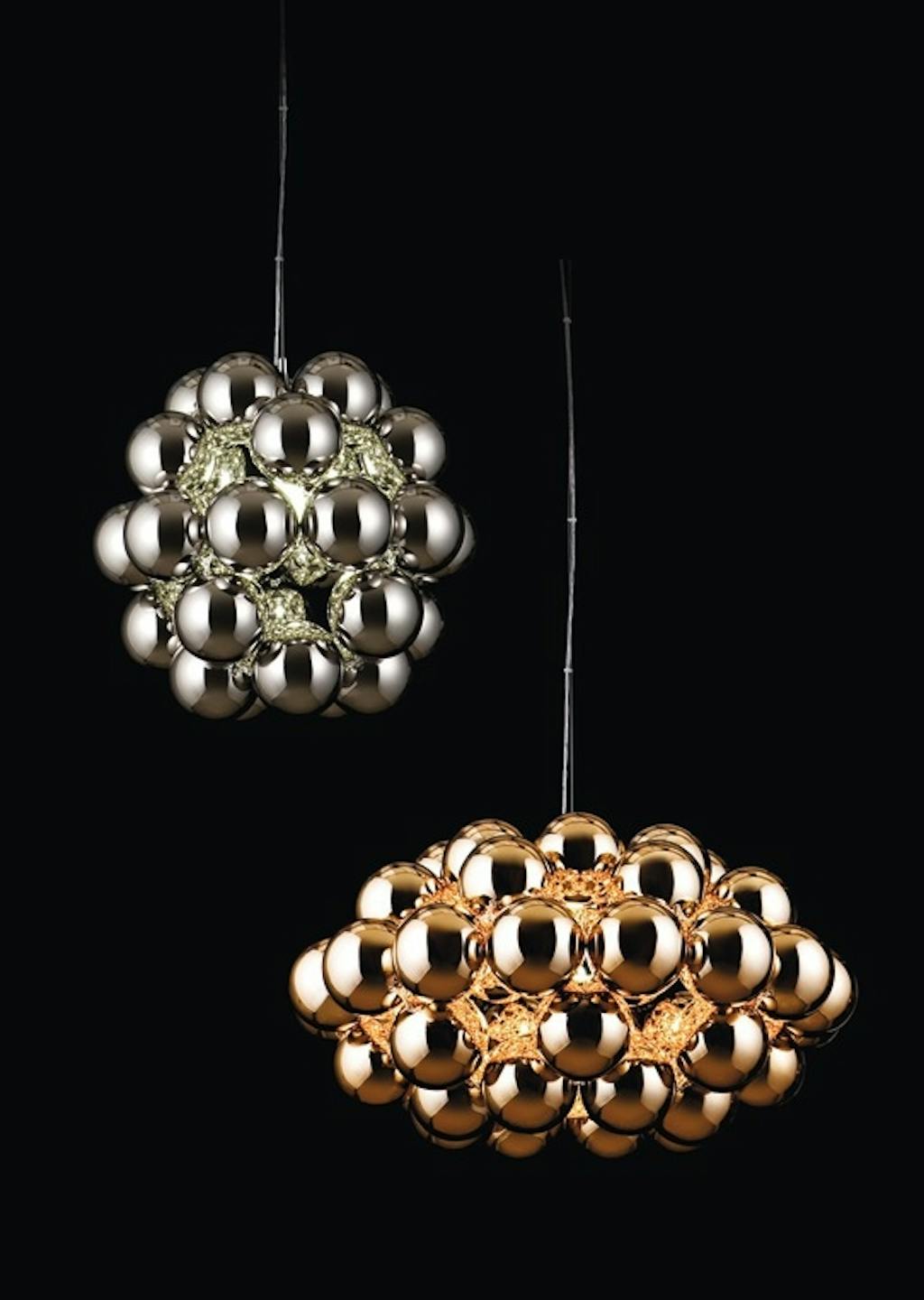 Beads er en serie lamper designet af Winnie Lui for Innermost. De to skulpturelle lamper er fremstillet i kobber og stål og polycarbonat. Lille model diam. 54 cm, stor diam. 77 cm, 7995 kr. og 12.500 kr., Roomstore.