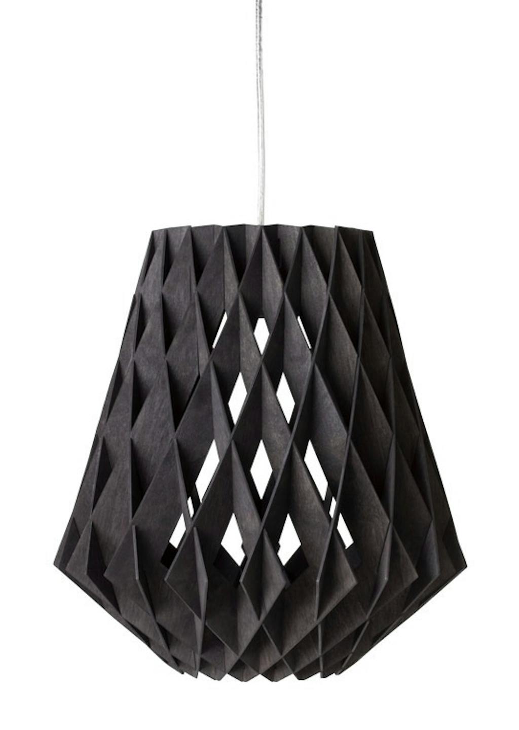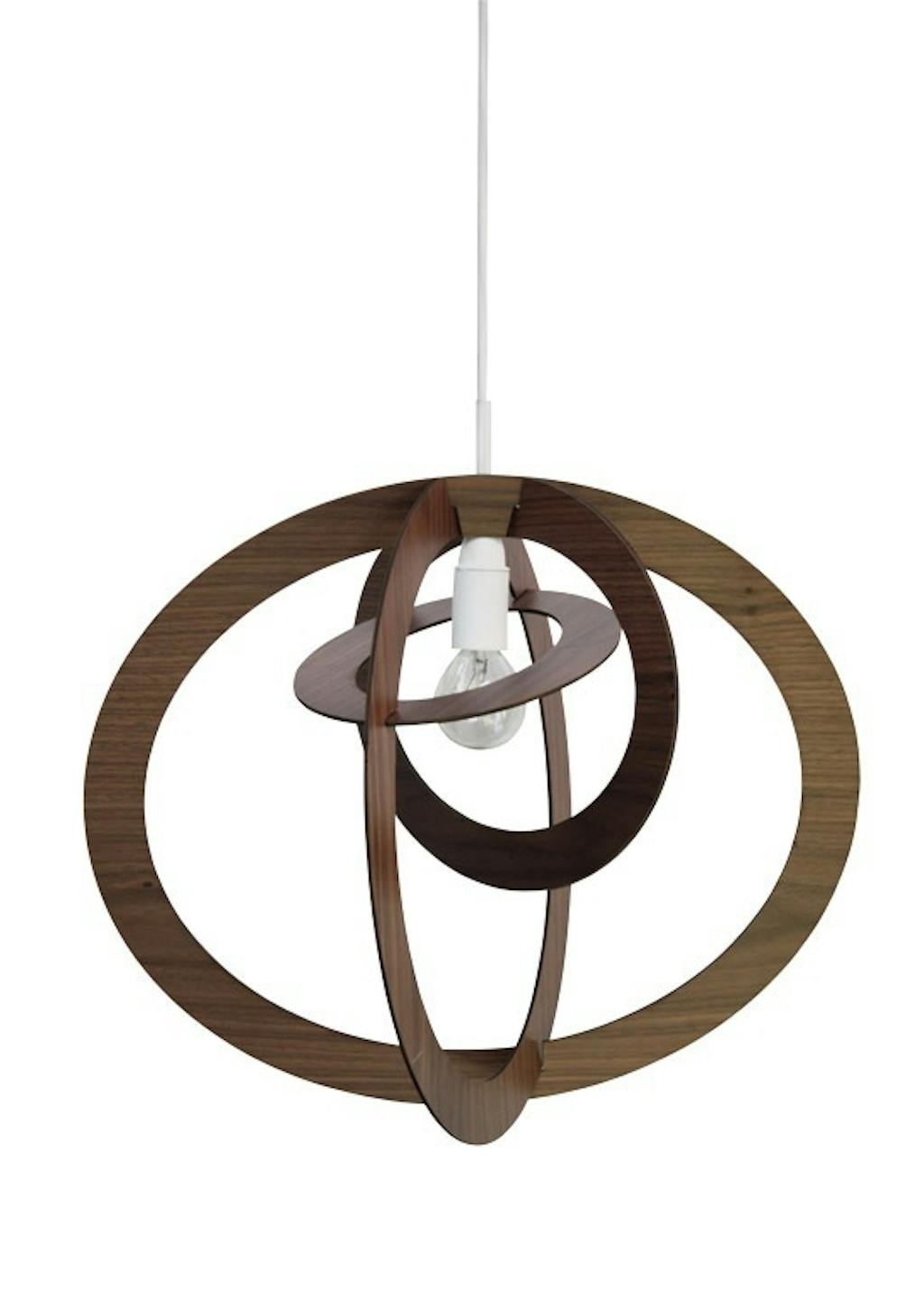 Saml selv-lampe, Remix i ask-, valnøddefinér og akryl, diam. 40 x 30 cm, fra 995 kr., Umlaute Designbureau.