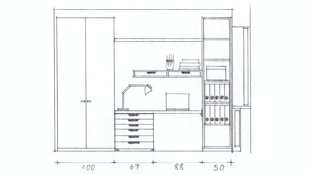 Rummet skal fungere som kombineret arbejds- og soveværelse til studerende, men efterfølgende skal det også kunne fungere til som ekstraværelse i parrets hjem. Arkitekten giver sine råd her.