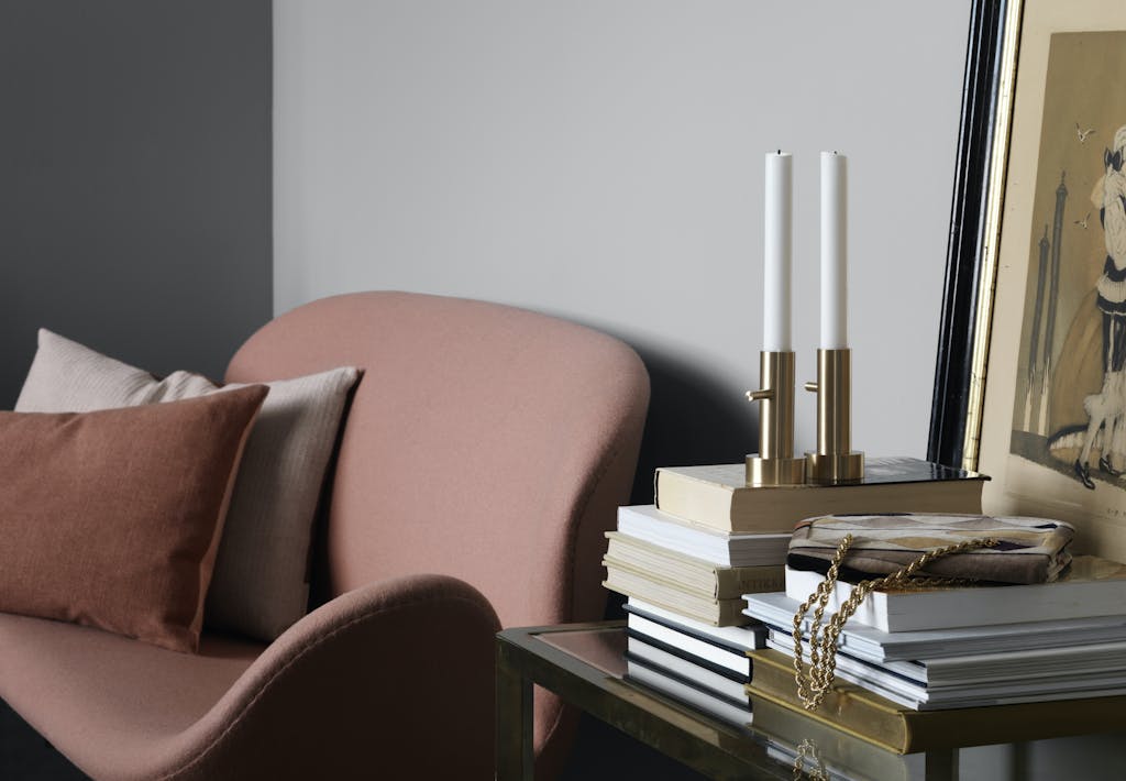 Brug dine boligaccessories til at skabe spil i udtrykket og lege med farver og materialer. Her kan du afprøve trendfarver på puder og plaider, som kan skiftes ud efter behov eller opdateres med tiden. Sæt gerne forskellige materialer sammen inden for samme farveskala for at skabe et underspillet, men interessant udtryk.