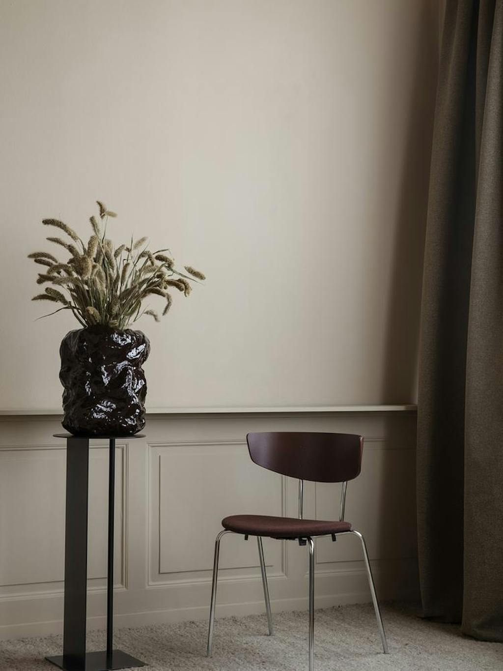 Står Li Edel-koorts varsler for fremtiden til troende, er den nye brune bølge ikke kun forbundet med tunge materialer som læder, fløjl og kanvas, men i høj grad også med blanke og metalliske overflader, kunstpels og taktile tekstiler med masser af struktur. D
