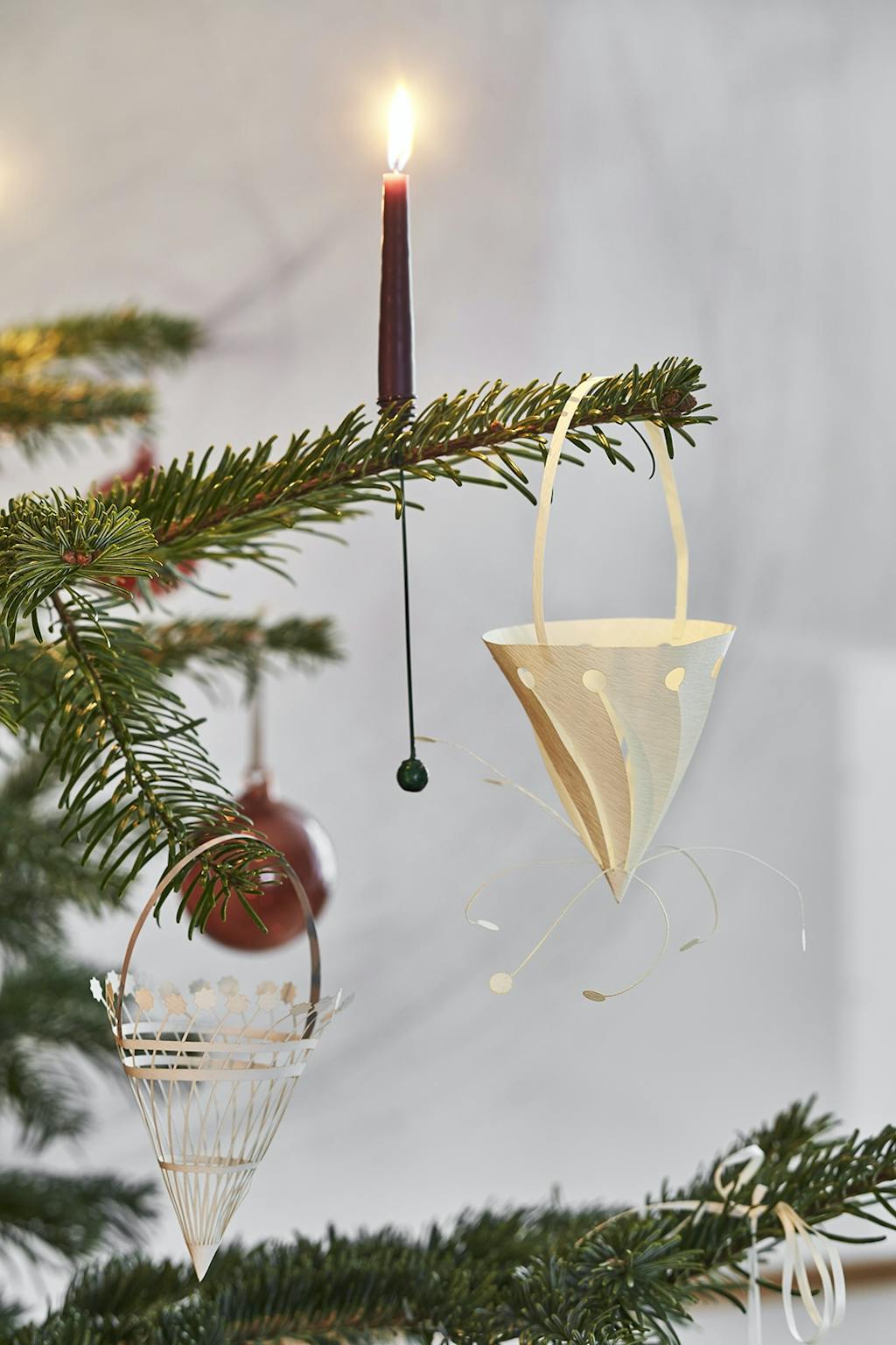 AfJulepynten hos arkitekt Amanda Betz er klippet af papir med virkelighedstro motiver som bærgrene, gran og stjerneskud, men også med mere eventyrlige og finurlige motiver.