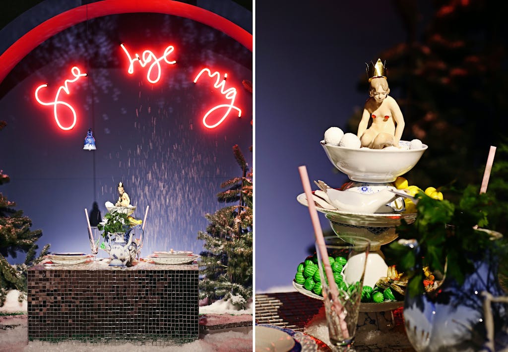 I et halvt århundrede har Royal Copenhagen i juletiden inviteret hele Danmark til bords på Amagertorv i København. Her har kendte og kongelige stået for opdækningen med det fine porcelæn, og det tiltrækker flere hundrede tusinde til hovedstadens strøg hvert år. I år er bordene ret barnlige, og det er helt med vilje, for det foregår i samarbejde med Julemærkefonden, som siden 1904 har hjulpet tusindvis af børn til et bedre liv. De seks, som står med pyntefaklerne i år er designeren Shane Brox, tv-værten Signe Lindkvist, Hollywood-ikonet Ole Henriksen, livsstilseksperten Anne Glad, danseren Thomas Evers Poulsen og skaberen af årets julemærke, grafikeren Jakob Kühnel. Bordene kan opleves fra nu og frem til den 1. januar i i Royal Copenhagens butik på Amagertorv 6 i København.