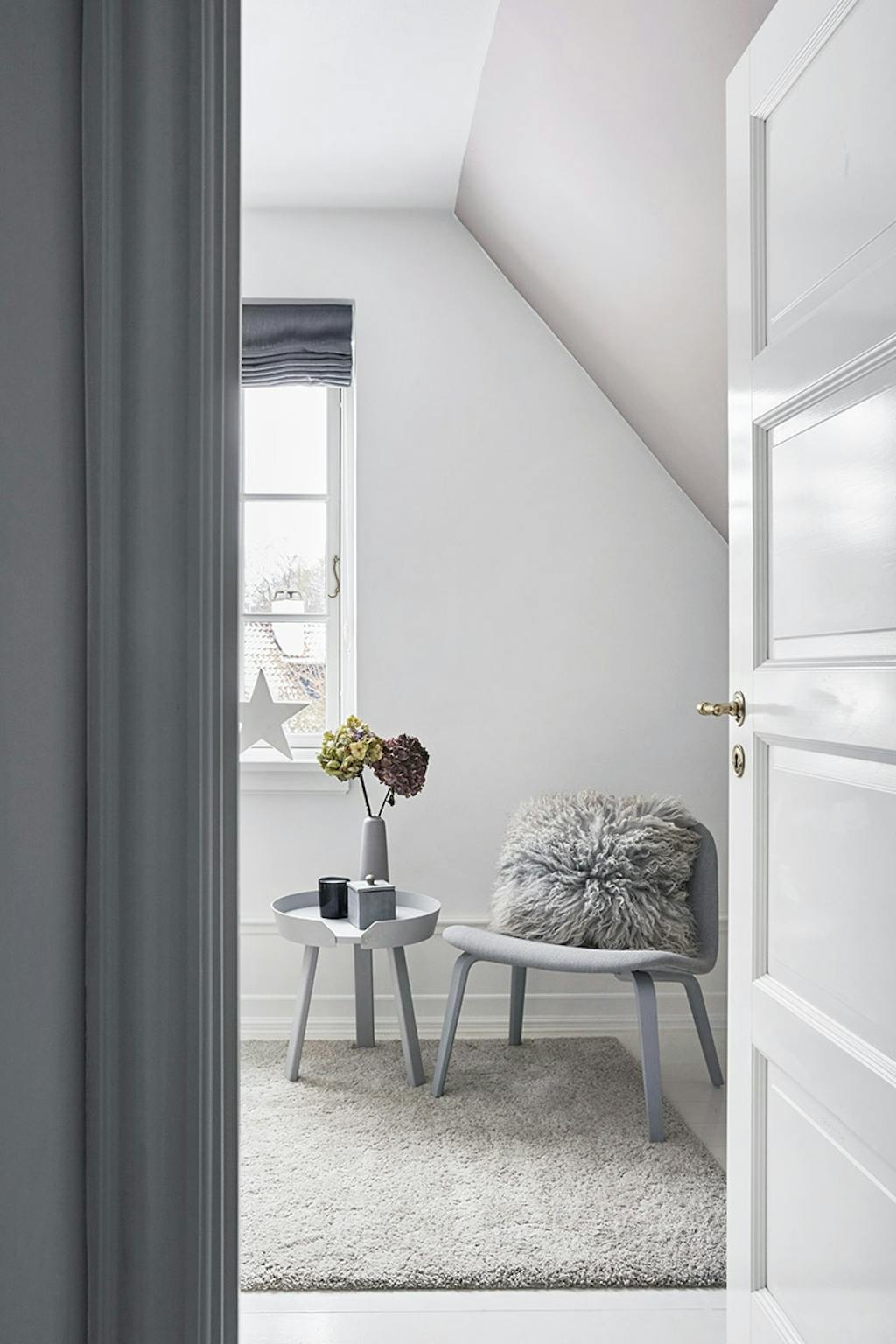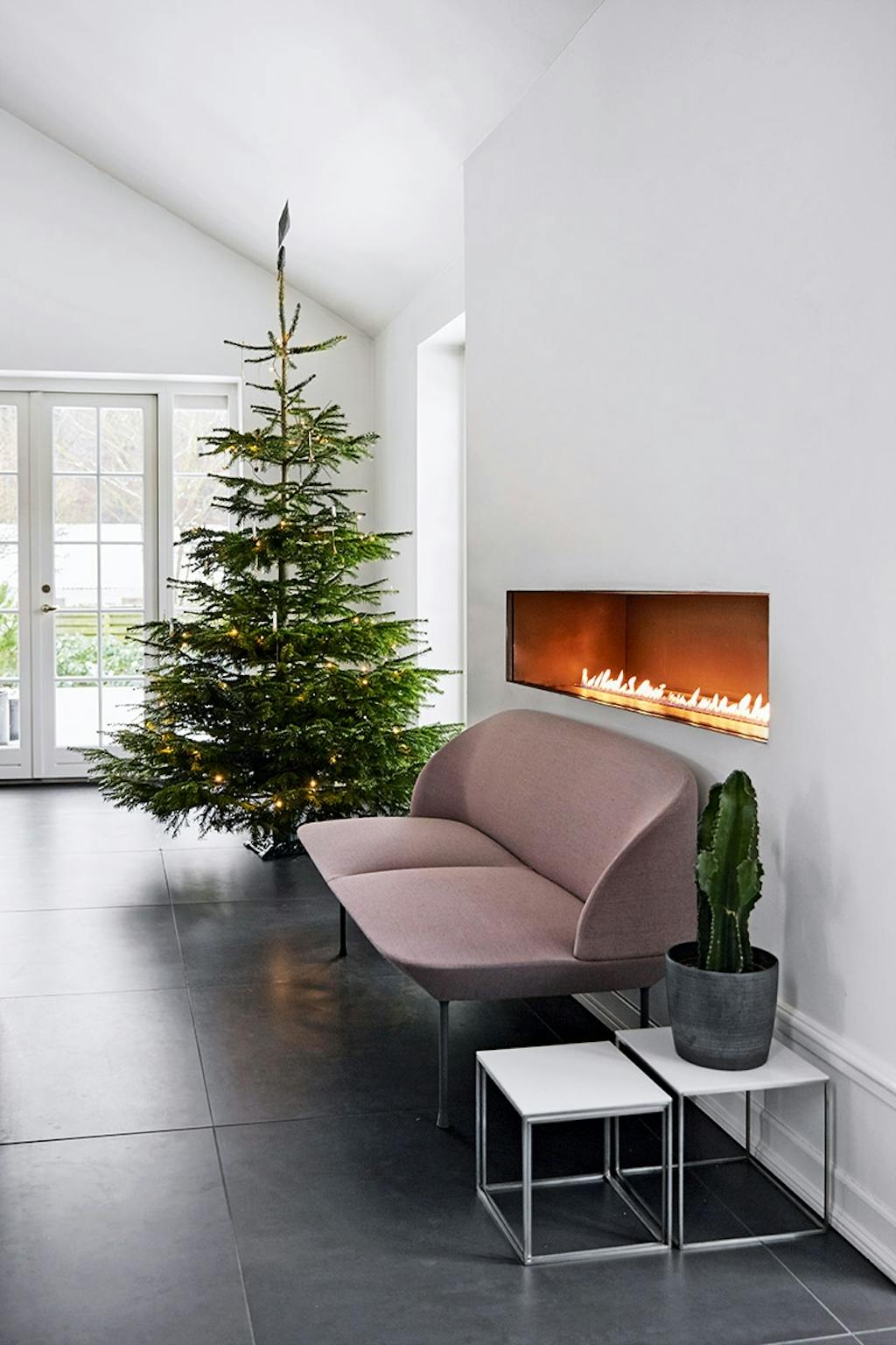 Det skal være enkelt, og hun holder det gerne i gråt og bordeaux mikset med naturmaterialer som kogler, mos og lærkegrene. For så passer julens pynt til udtrykket i resten af huset, hvor størstedelen af væggene er malet grå, og designklassikere af Poul Kjærholm og Le Corbusier troner med udvalgt skulpturelt og kunstnerisk liv.