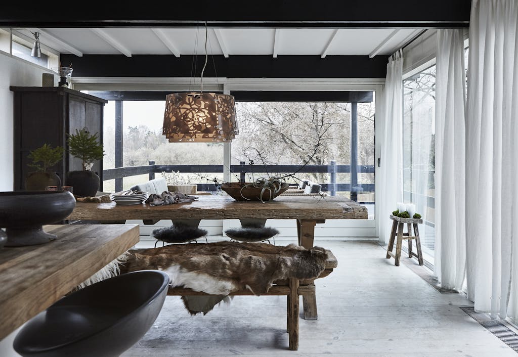 – Jeg synes, det klæder husets rene, enkle formudtryk rigtig godt med møbler, der har lidt patina og tyngde. Ved at drille de lidt stringente 70’er-rum med ting og tilbehør fra en helt anden verdensdel og tid opstår der nogle spændende kontraster, som vi godt kan lide at omgive os med, forklarer hun.