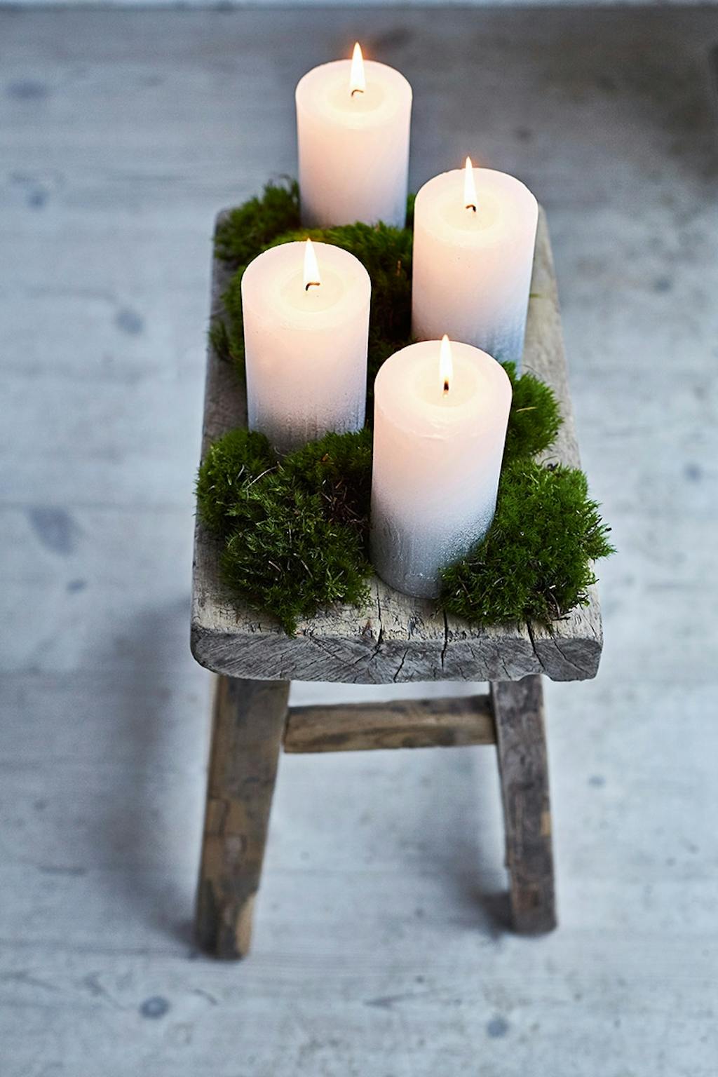 Adventskrans af mospuder og bloklys fra Broste Copenhagen.