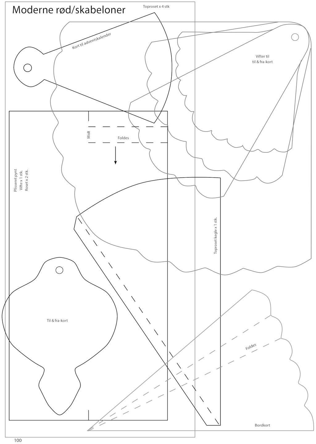 - Klip 2 rektangler i papir på 12 x 28 cm, og fold stykkerne med 2 cm's mellemrum (se skabelon 4 nederst i artiklen).