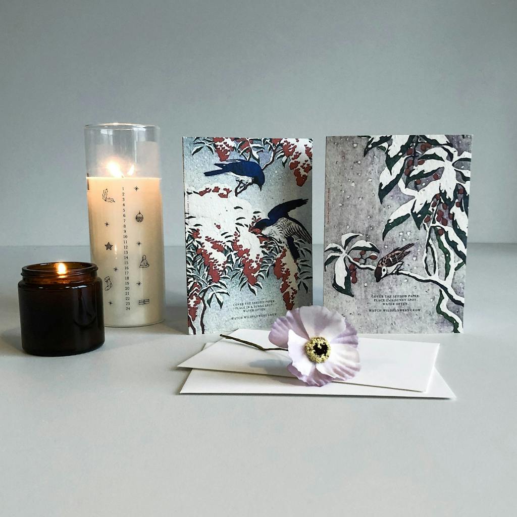 Det lyder måske skørt. Men dette julekort er fremstillet af miljøvenligt genbrugspapir med blomsterfrø. Kortet kan altså plantes efter brug og forvandle sig til de smukkeste blomster. Det er blevet til igennem en samarbejde mellem Viola Brun og Zero Waste Shop.