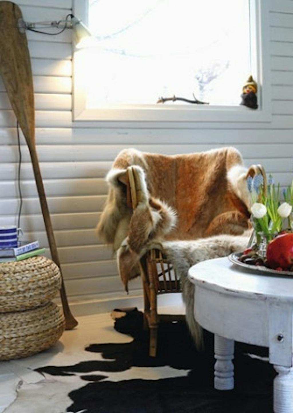 I sommerhuset er der ingen temaer eller forudindtagede holdningner til farvevalg. Stemningen bliver slået an af de materialer, naturen byder på, og suppleres med stearinlys og friske blomster. Og netop den meget enkle, nemme dekoration af sommerhuset er kendetegnede for familiens generelle holdning til julen.