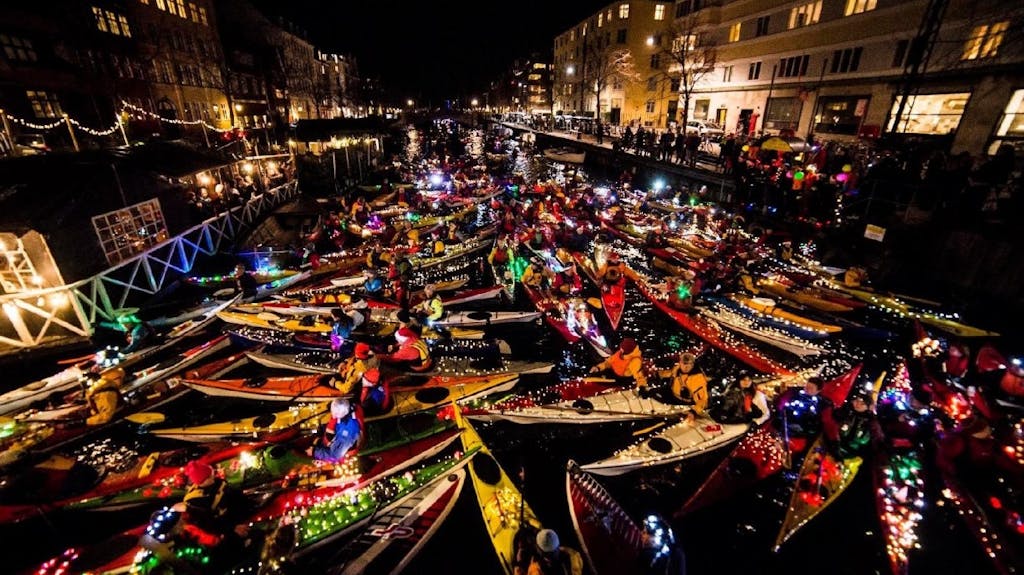Københavns kanaler byder på julestemning som den ikke fås mange andre steder, når der fejres Lucia den 13. december. Et væld af smukt dekorerede kajakker, der er pyntet med både julekæder og små juletræer, sejler gennem de københavnske kanaler fra klokken 17. Undervejs på turen gøres holdt, så der kan synes julesange. Det sker blandt andet kl. 17.15 i Nyhavn og kl. 18.15 ved Højbro plads. Turen ender ved Kayak Republik, hvor der serveres æbleskiver og gløgg.
