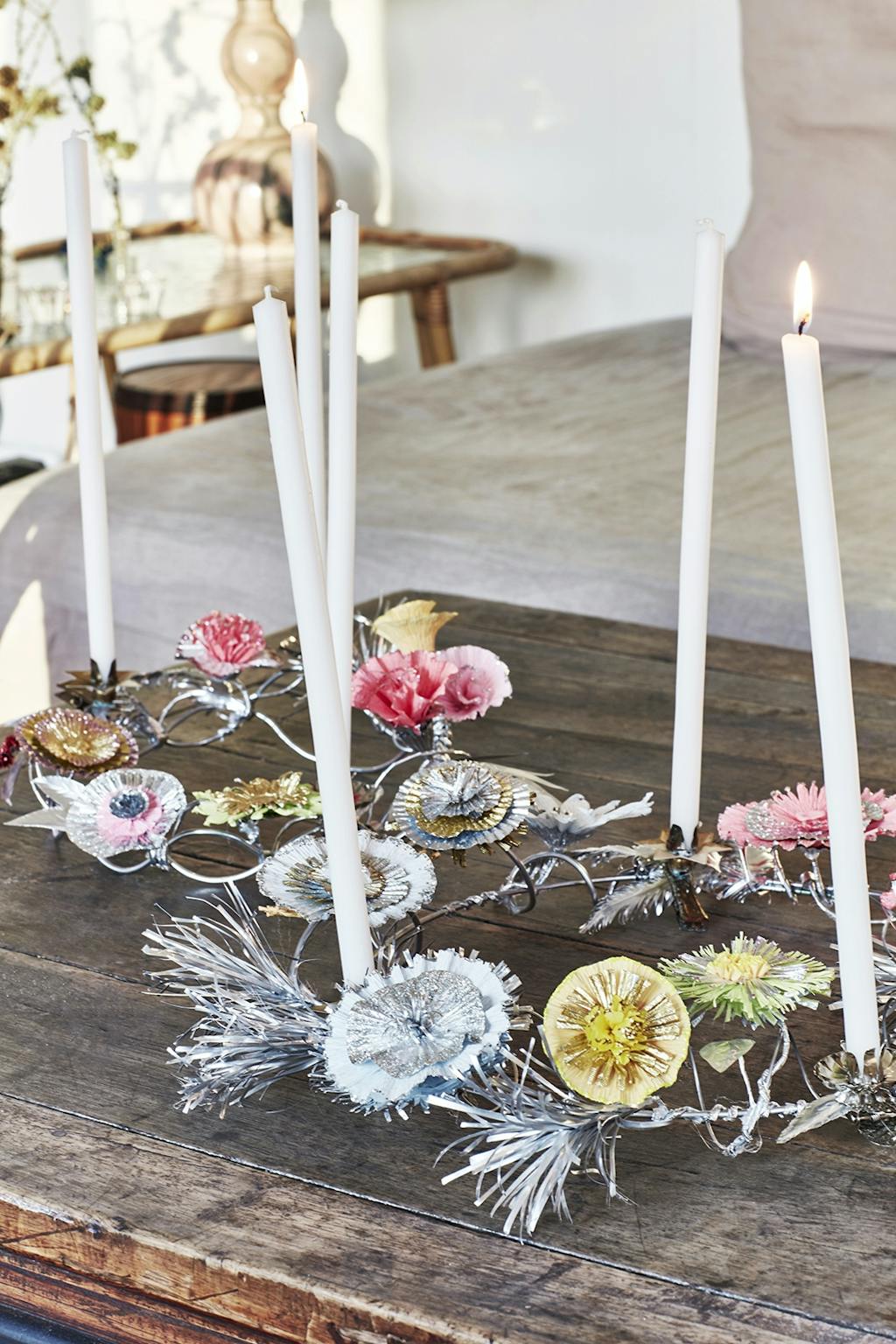 Med pastelfarver og rosa nuancer er julepynten i Jane Kønigs sommerhus spækket med utraditionelle twists.