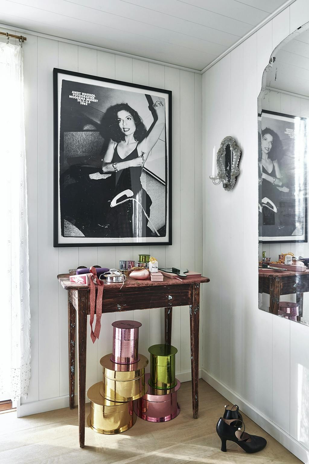 AfJuletræet er pyntet med al slags pynt som gamle glaskugler, små musetrapper samt flere rækker af perler. De store bokse i metallicfarve er lavet i overstørrelse som kopier af smykkeæskerne fra butikken. Alle gaver er pakket ind i et væld af pastelfarver og bundet med garn og personlige kort og papirrosetter.