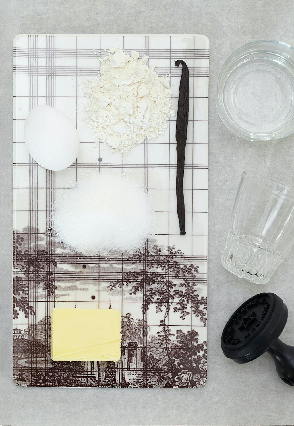 Du kan også lave chokoladesmåkager: Skift vaniljen ud med kakao, og tilsæt ekstra sukker. Vi har brugt et stempel fra Nicolas Vahé/ House Doctor. Der er 3 medfølgende stempelpuder (her stjerne).