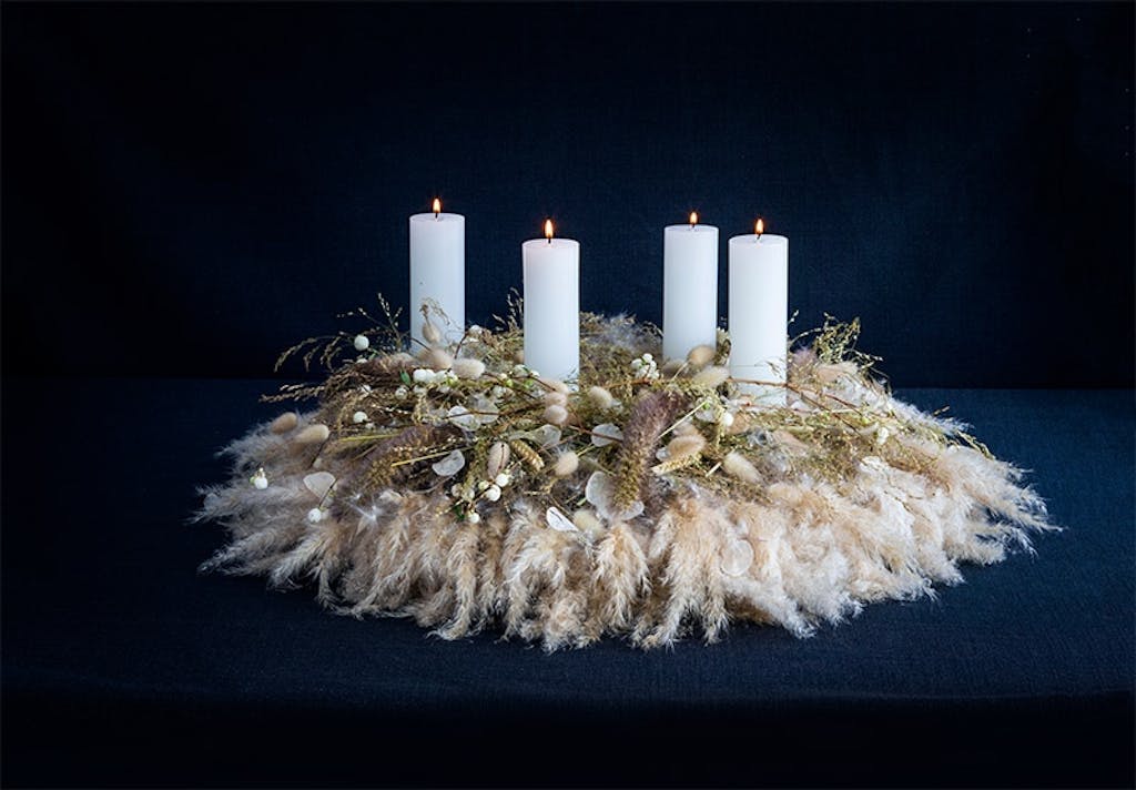 Kan adventskransen stråle af julestemning uden guld, sølv, glimmer og andet pynt? Ja, sagtens. Se blot disse fire smukke kranse, der hylder naturens små mirakler. Den internationalt anerkendte blomsterdesigner Annette von Einem tryller med græsser, snebær, kogler og fjer.