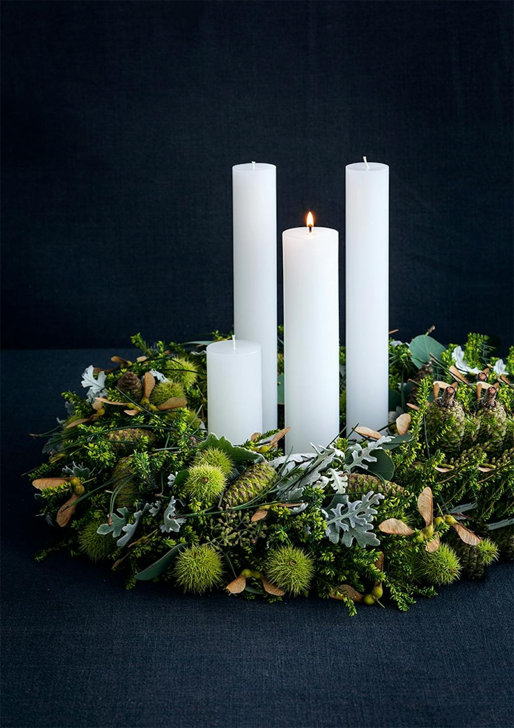 Om dekorationerne skal være kalenderlys, adventskrans eller bare julepyntende er op til dig – blot juster antallet af stearinlys.