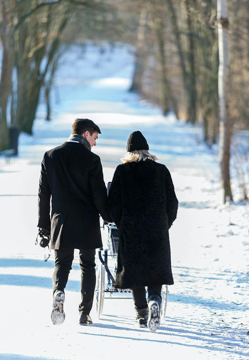 Med det første drys af sne er julen ankommet til den lille familie i det røde hus, hvor alt ånder fred og idyl. Ilden knitrer lystigt i pejsen, adventskransen er tændt, huset er pyntet smukt op, og på mors arm sover parrets nye datter trygt igennem sin første store højtid.