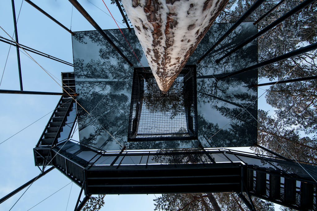 En overvældende, nordisk naturluksus folder sig ud i toppen af kæmpemæssige fyrretræer i Nordsverige.
